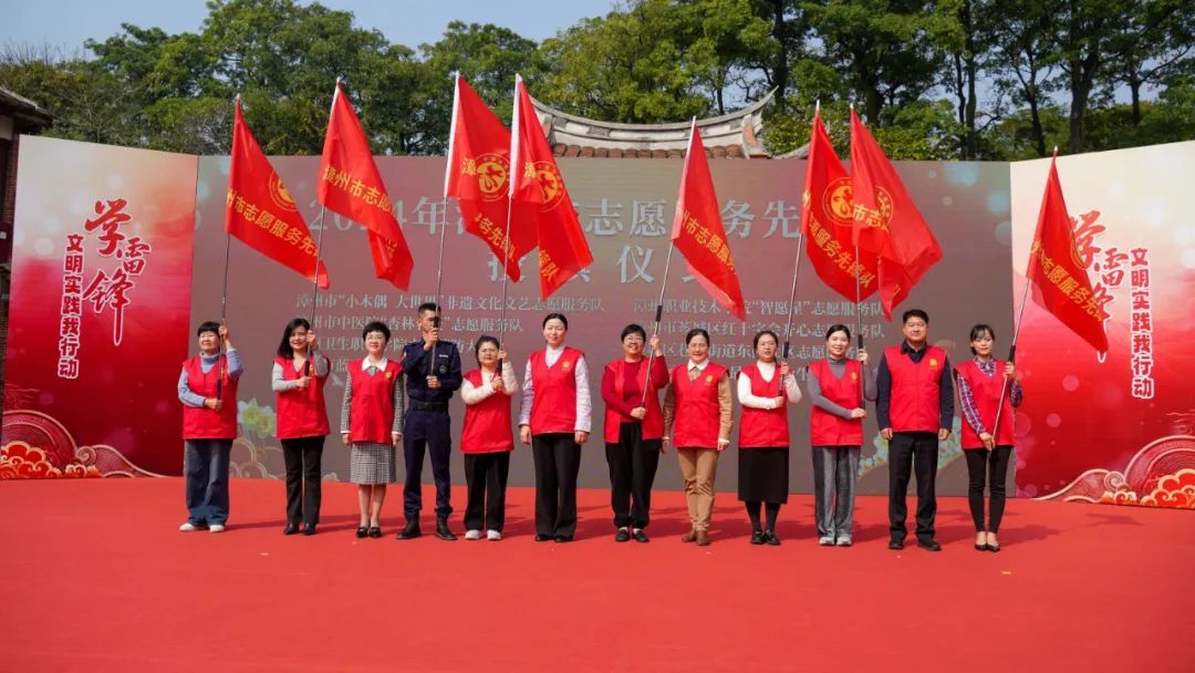 值此第61个学雷锋纪念日与第25个中国青年志愿者服务日双节来临之际,漳州市委文明办、芗城区文明委、漳州市教育局等多部门联合主办的漳州市2024年“学雷锋·文明实践我行动”主题活动,于3月5日在漳州古城隆重拉开序幕。在本次活动中,我校荣膺漳州市志愿服务先锋队的称号,被授予象征荣誉与责任的志愿服务先锋队旗帜。