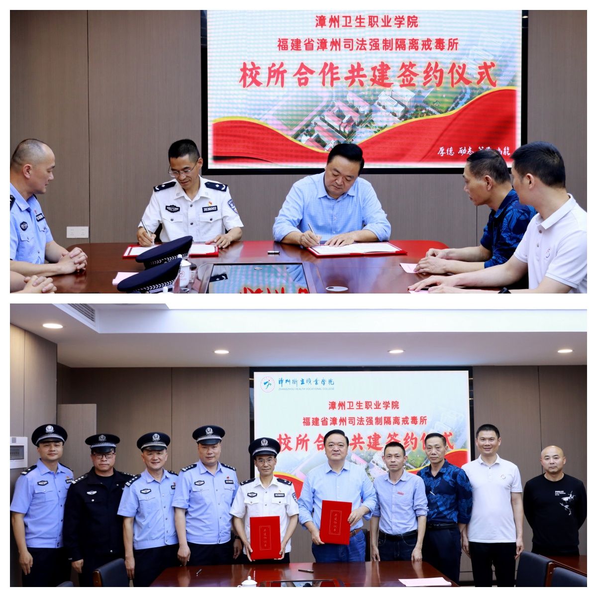 3月26日下午,我校与福建省漳州司法强制隔离戒毒所开展校所共建签约揭牌仪式暨禁毒宣教活动。学校党委副书记黄乃光、福建省漳州市司法强制隔离戒毒所政委、党委副书记曾宪樟共同为高职生禁毒教育基地漳州卫生职业学院教学点揭牌。