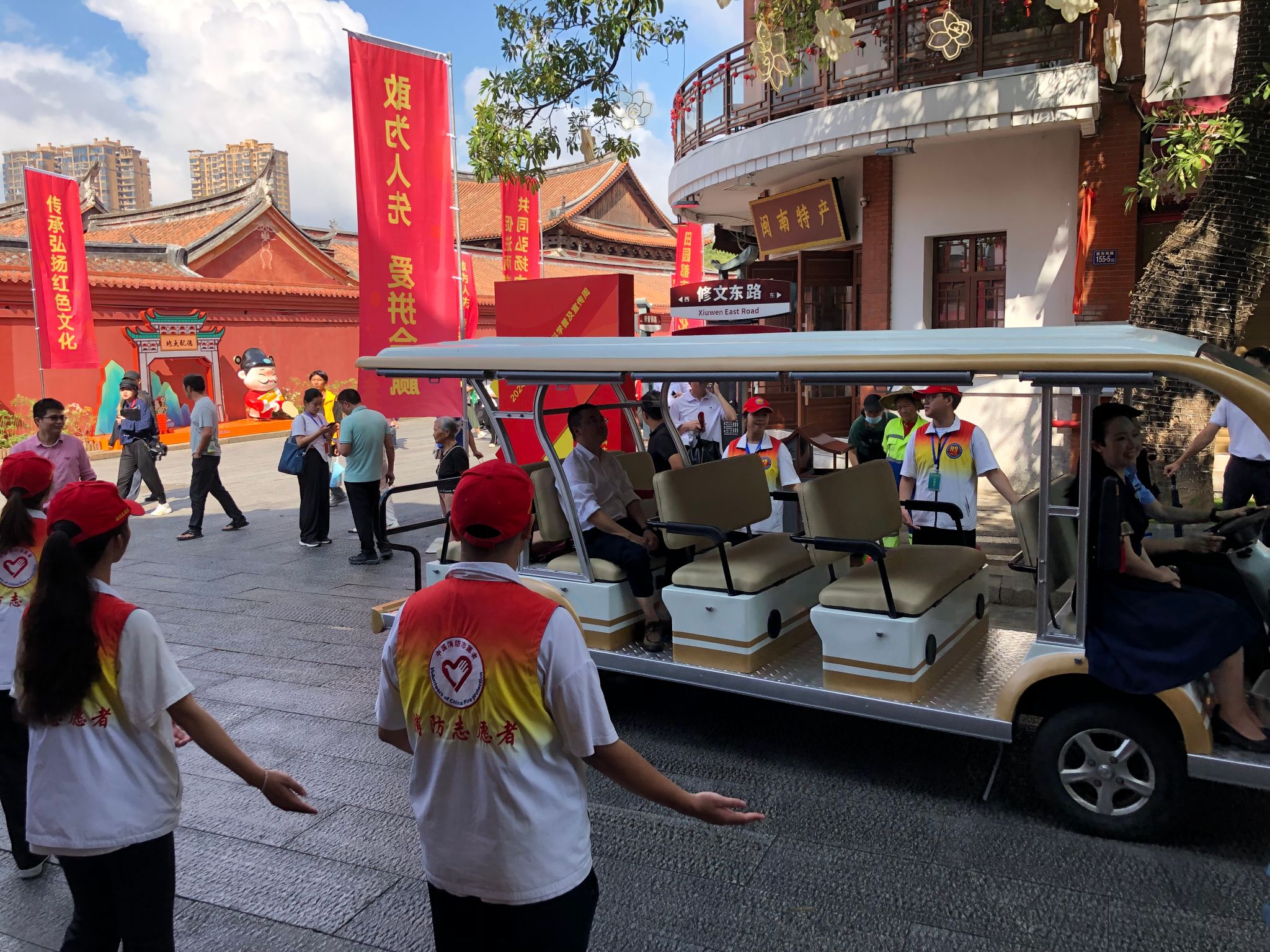图4:消防志愿者在主会场维护秩序和引导接待服务