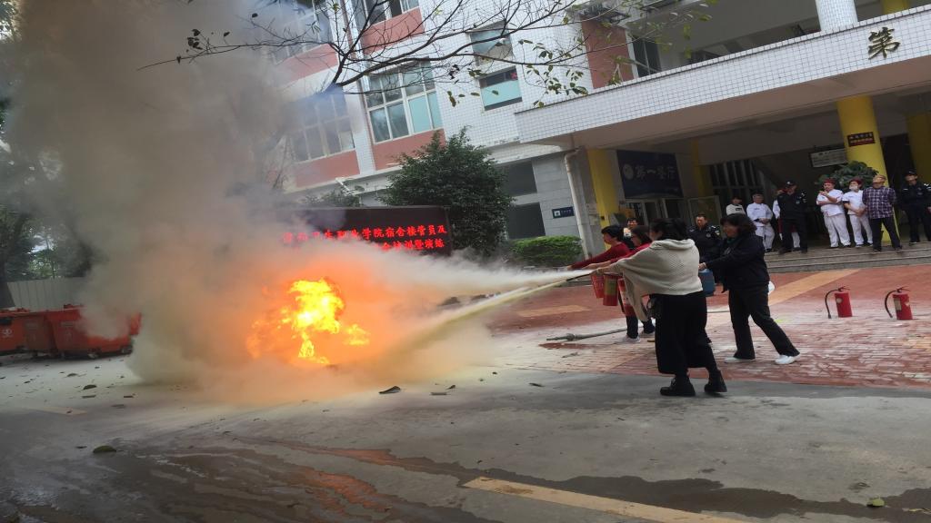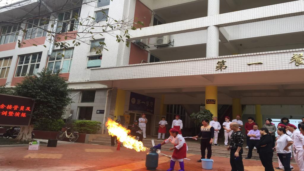 最后,学生宿舍楼管员及食堂员工在培训现场参与了灭液化气罐火及灭油盆火操作演练。