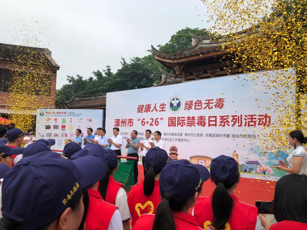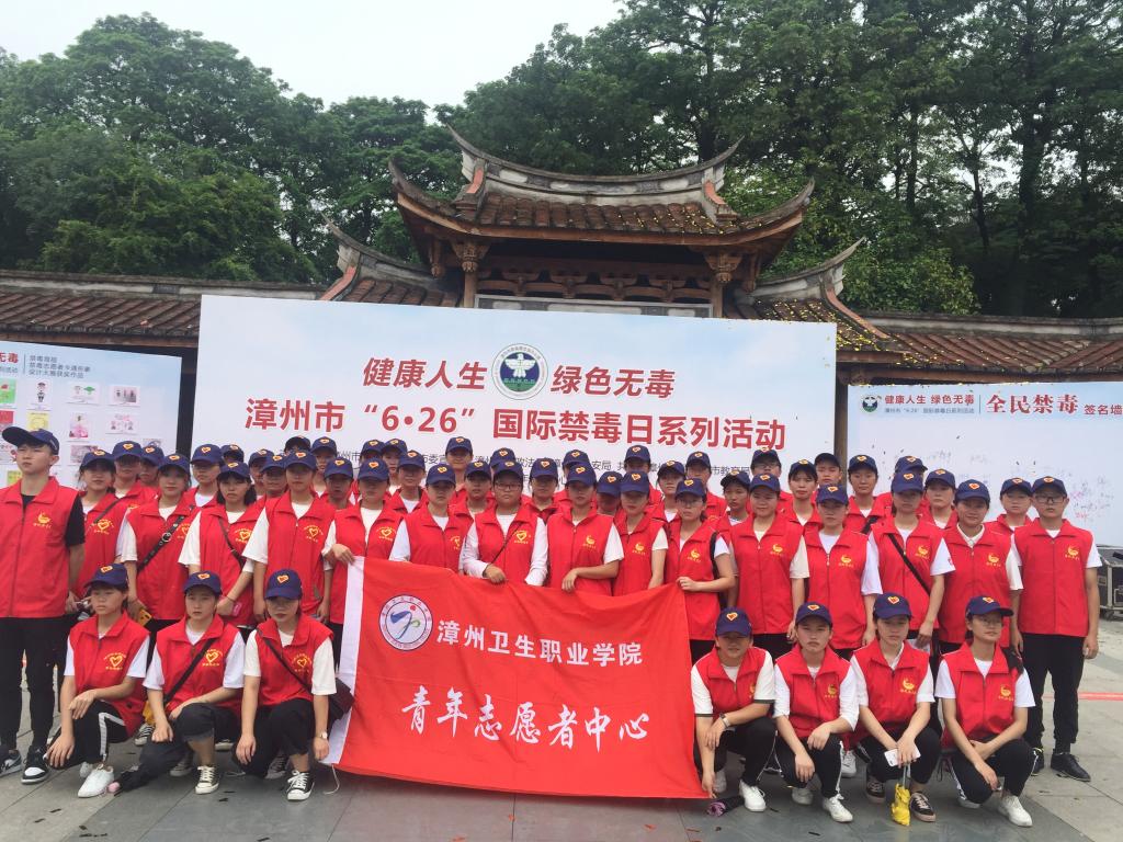 为进一步营造全民禁毒的良好氛围,充分发挥我院禁毒志愿者的宣传作用,提高民众的禁毒意识。今年是第32个国际禁毒日,2019年6月26日上午,我院安全保卫处与团委组织禁毒志愿者参加主题为“健康人生 绿色无毒”——漳州市"6.26"国际禁毒日系列活动。