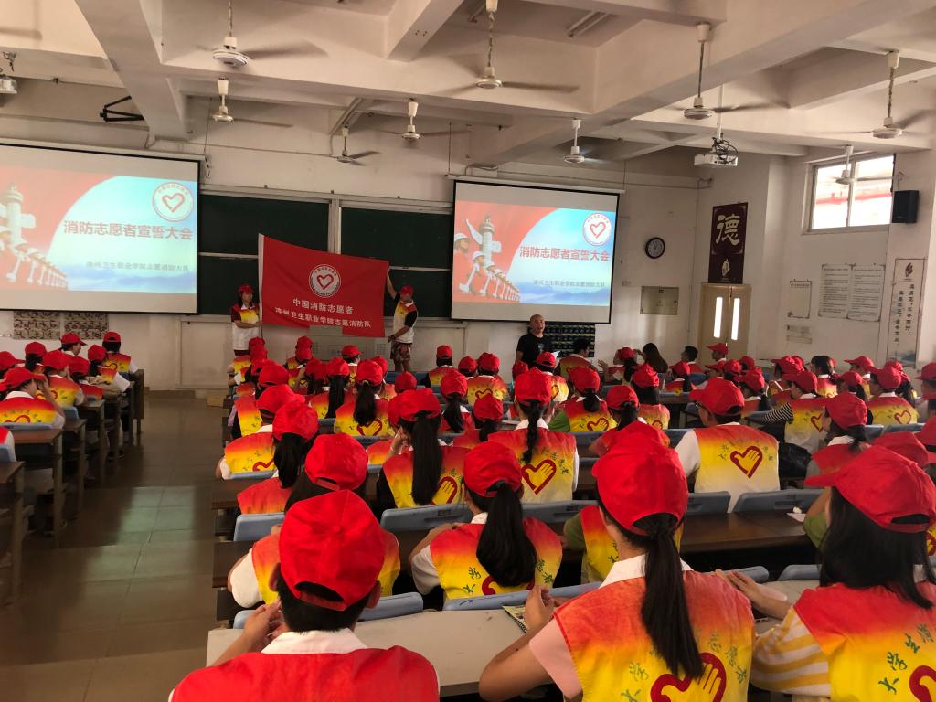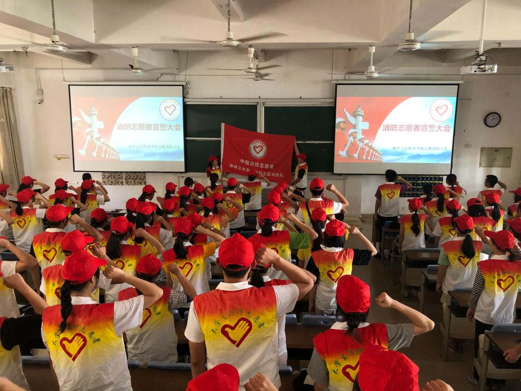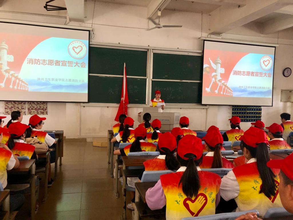 为弘扬“奉献、友爱、进步、互助”的消防志愿者精神,进一步推动消防志愿服务工作深入开展,提高师生的消防安全意识。9月29日中午 ,漳州卫生职业学院志愿消防大队在学院安全保卫处领导下举行消防志愿者宣誓大会。