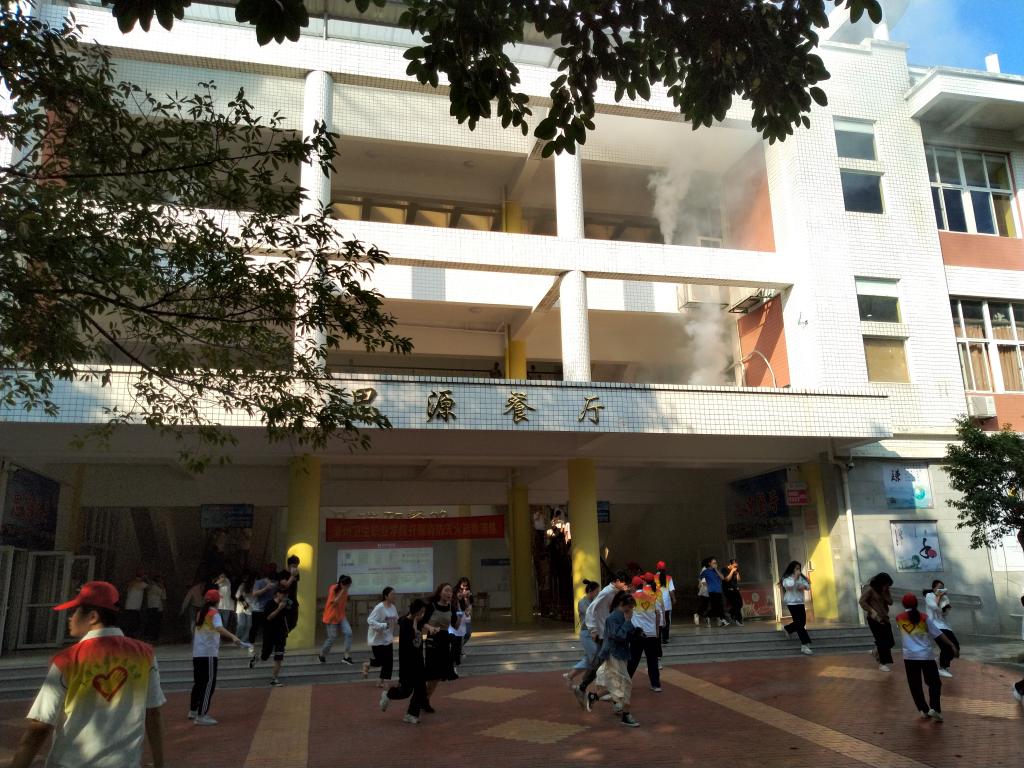 下午14:30,我院安全保卫处工作人员对全体师生员工在一号食堂组织开展消防灭火疏散演练,在规定时间内,由疏散人员将被困师生员工疏散至指定的“安全地带”,微型消防站保安人员出两支水枪及时将火源灭掉。