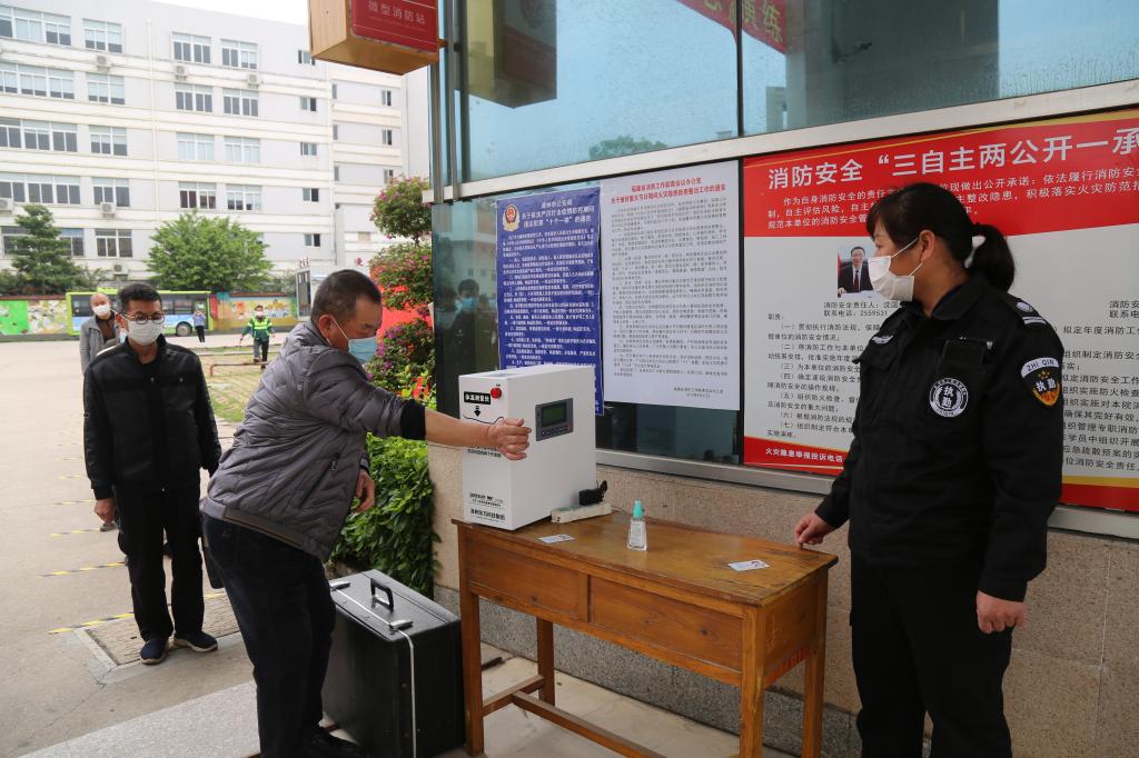 开展演练前,学院成立疫情防控应急处置领导小组,下设体温检测组、安全维稳组、清洁消杀组、防疫处置组等4个小组,确保应急演练有序开展。演练主要包含学生行李消毒、学生间隔1米排队、入校验明身份检测体温、外来人员不服从管控处置、体温异常人员隔离观察、食堂错峰用餐、就餐现场发热情况处理等场景。演练全程紧张有序,准确高效,达到演练目的。