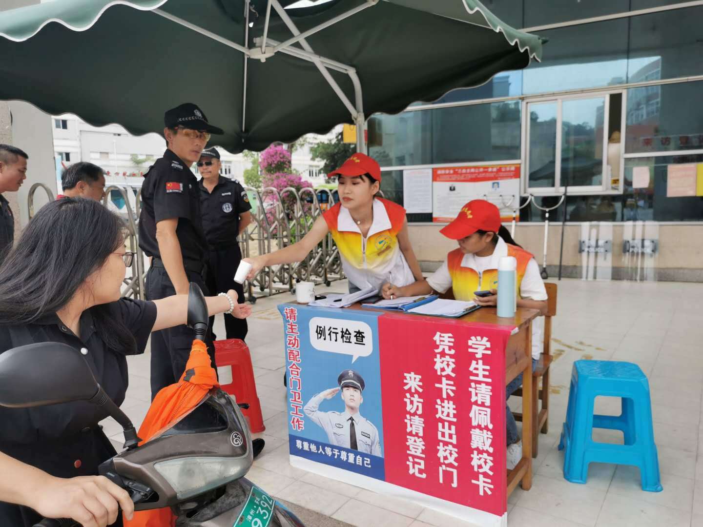 消防志愿者接受了短暂的培训后,开始体验监控管理、门岗管理、乱停车监管。通过热情耐心的态度,规范的语言和动作,消防志愿者们有效遏制了少数师生乱停乱放车辆和外来人员不配合信息登记的不文明行为。消防志愿者劝导大家“开文明车,行文明路,做文明人”,为创建文明城市作贡献。