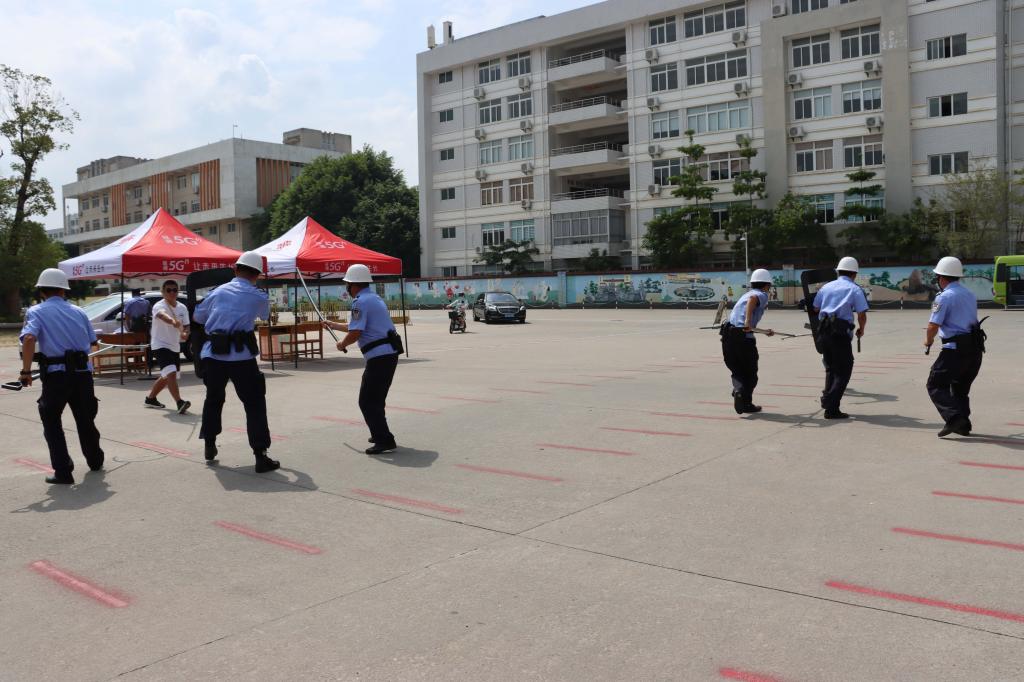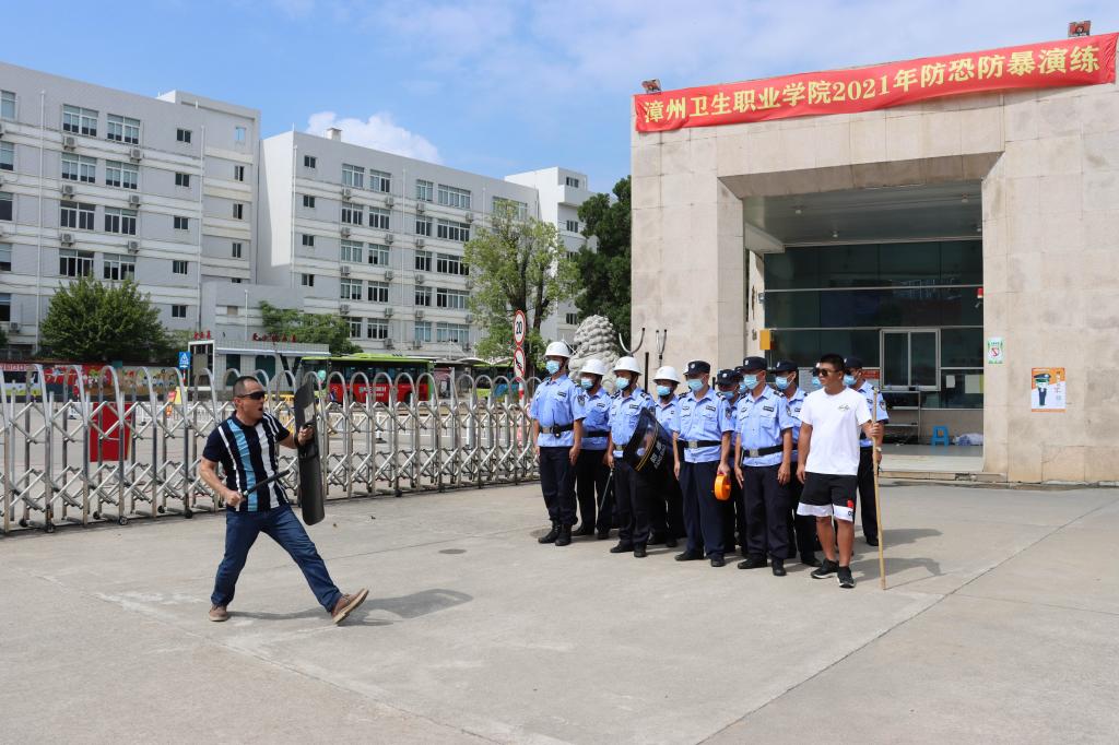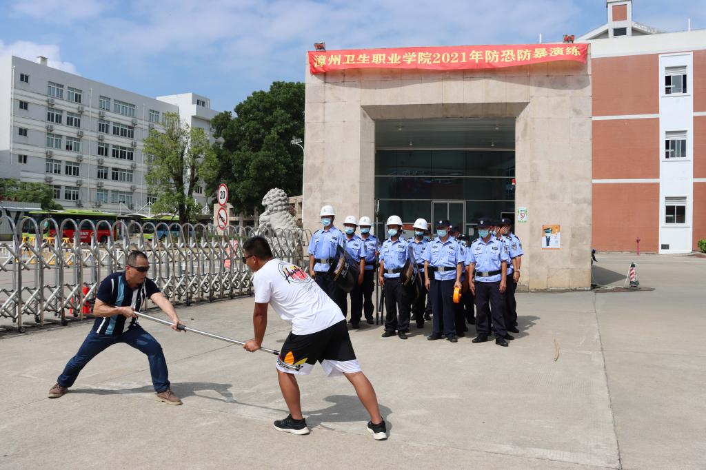 为了有效预防和处置各类伤害师生的恶性事件,宣传和普及防暴应急知识和技能,确保学院师生人身安全,提高学院安保人员应对恐怖和暴力安全意识和处置能力,2021年9月1日上午学院联合漳州市公安局县前派出所进行校园反恐防暴演练。