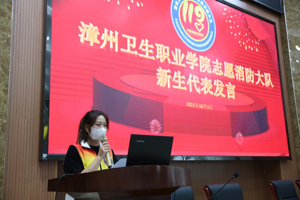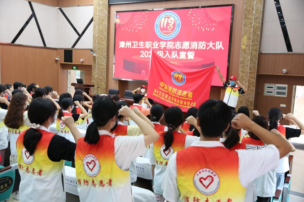 15:15消防志愿者们陆续签到进场,并按顺序坐好。宣誓大会进行了“宣读任免通知”、“新老志愿者服装交接仪式”、“消防志愿者代表发言”、“全体人员宣誓”、“消防安全检查”等五个环节。新生代表王一格表示,能成为一名光荣的消防志愿者,亲身参与到学院消防志愿服务当中,对于她来说是一次难得的机遇,更是义不容辞的责任和义务。她呼吁大家团结协作,掌握本领;关爱生命,远离火灾;关注消防,学习消防,热爱消防,共同打造和谐、平安漳卫!