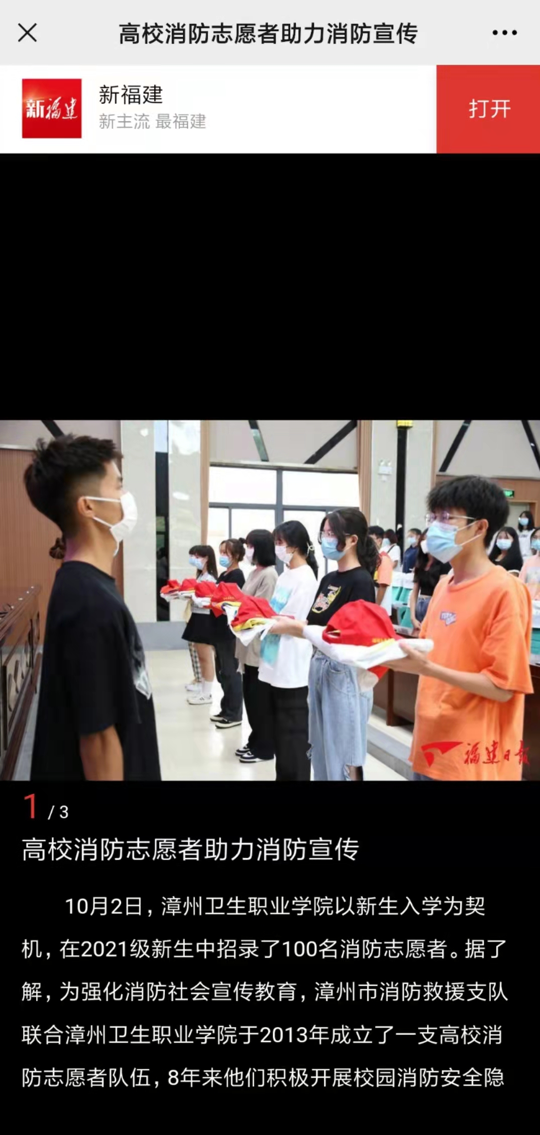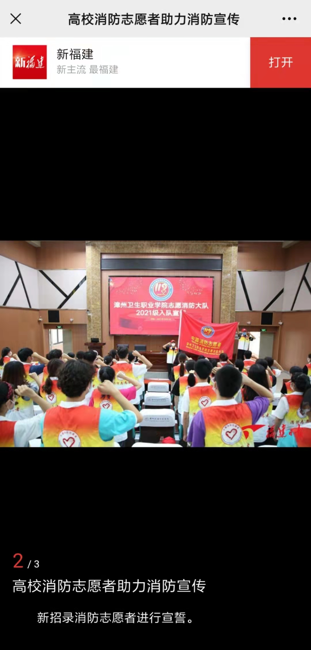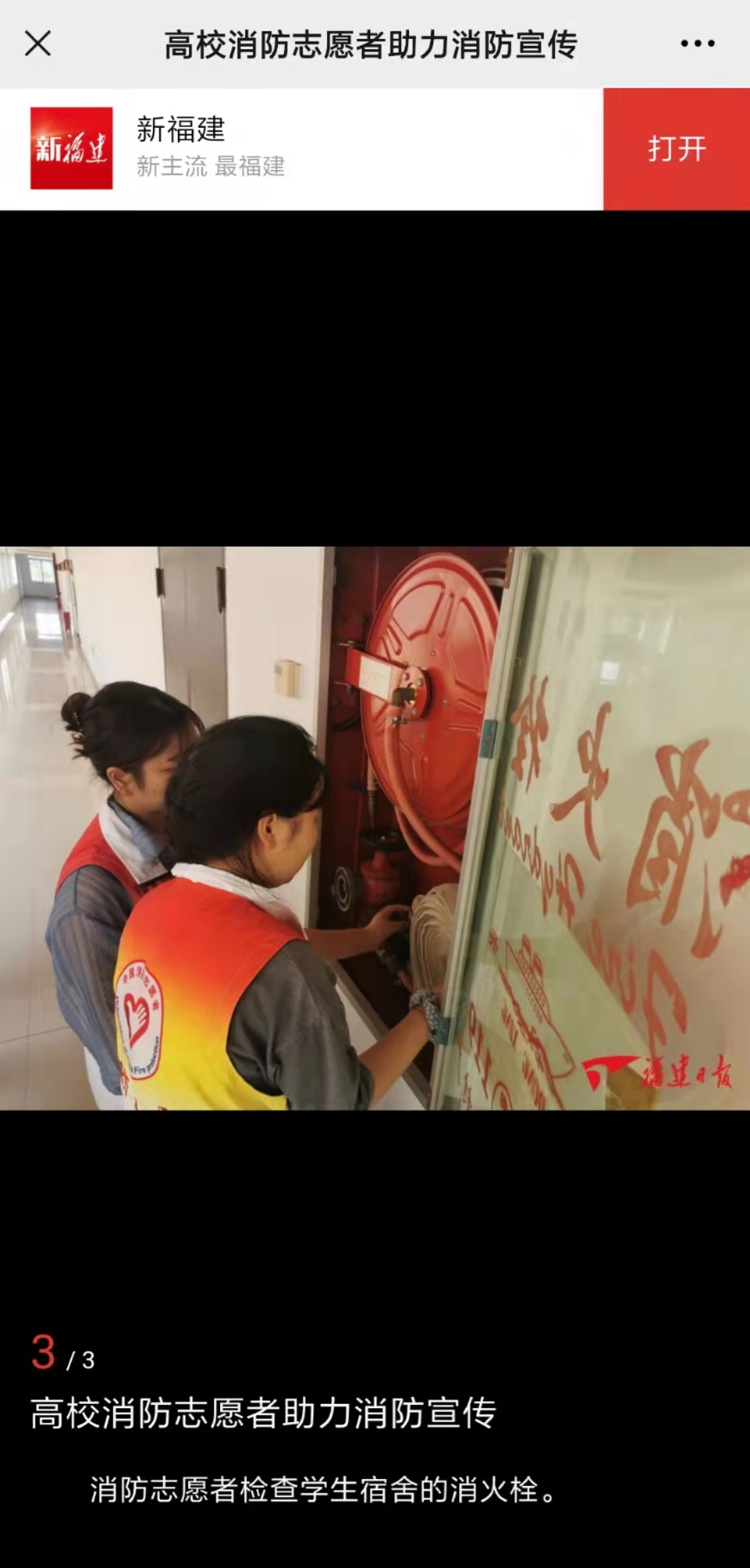 10月2日下午,学院以新生入学为契机,在2021级新生中招录100名消防志愿者,举行新招录消防志愿者宣誓大会并组织开展消防安全检查活动,该新闻被福建日报报道,报道如下: