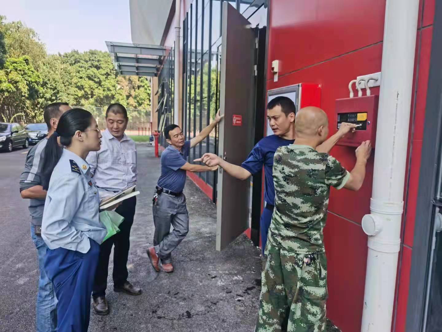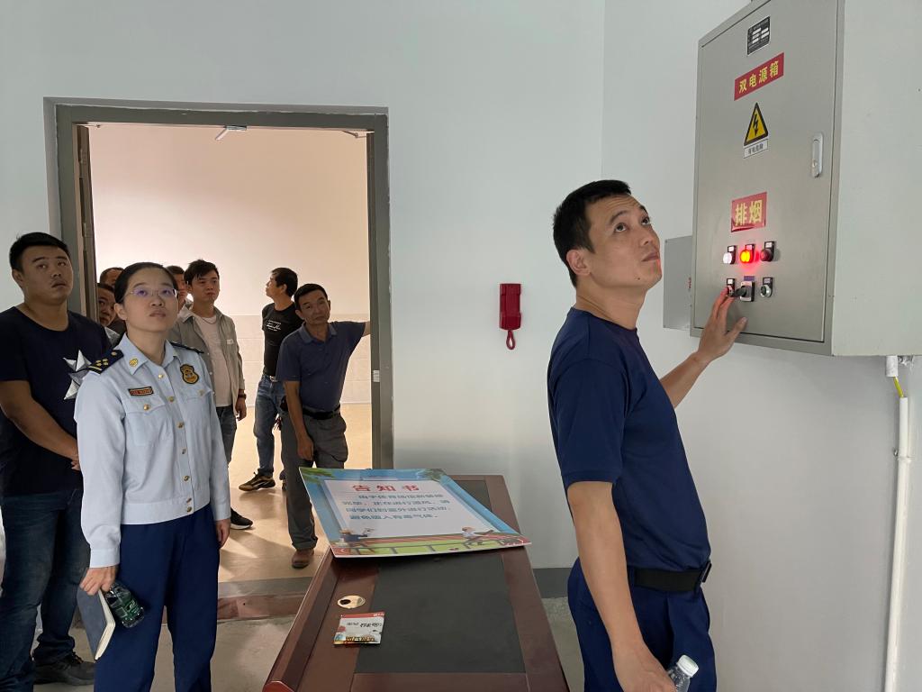 检查小组听取了陪同人员对场馆消防安全制度、消防器材设施设置、用火用电管理等情况汇报。现场实地检查场馆室内外消火栓、防火门、安全出口、疏散通道、疏散指示标志(应急灯)情况、火焰测试舞台幕布阻燃性、测试消防联动系统和防排烟系统。最后,检查小组到消防控制室查看了日常管理台账、管理制度、消防控制室值班情况和操作情况,并提出建设性建议和整改意见。