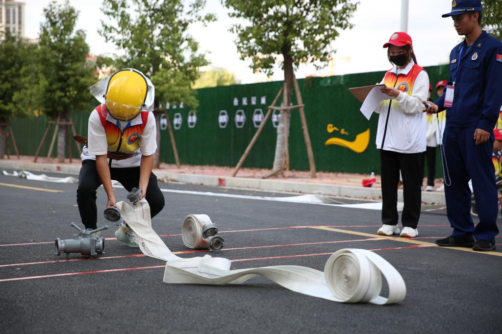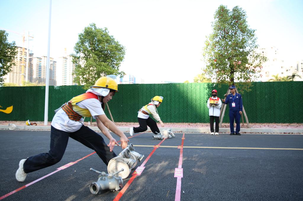 随着发令员的一声令下,本届消防业务技能竞赛正式拉开了帷幕。此次竞赛设置了五个比赛项目,分别是在两盘水带连接、原地着装灭火战斗服装抢答、灭火毯灭火、消火栓出水操、干粉灭火器灭火,采取“两两对抗”方式进行。竞赛场上热火朝天,参赛志愿者们你追我赶不甘示弱,各个项目的比拼异常激烈,男志愿者奋勇争先,女志愿者巾帼不让须眉,比赛高潮迭起,现场氛围浓烈。“穿着灭火防护服需先将裤子套在靴子上面,不仅可以加快穿着速度,亦能起到防护作用”、“灭火毯要对准油锅上方位置快狠准盖下去灭火,保证火源与空气阻隔”......许多消防志愿者纷纷感慨在比赛中进一步加强了消防技能和知识的掌握。
