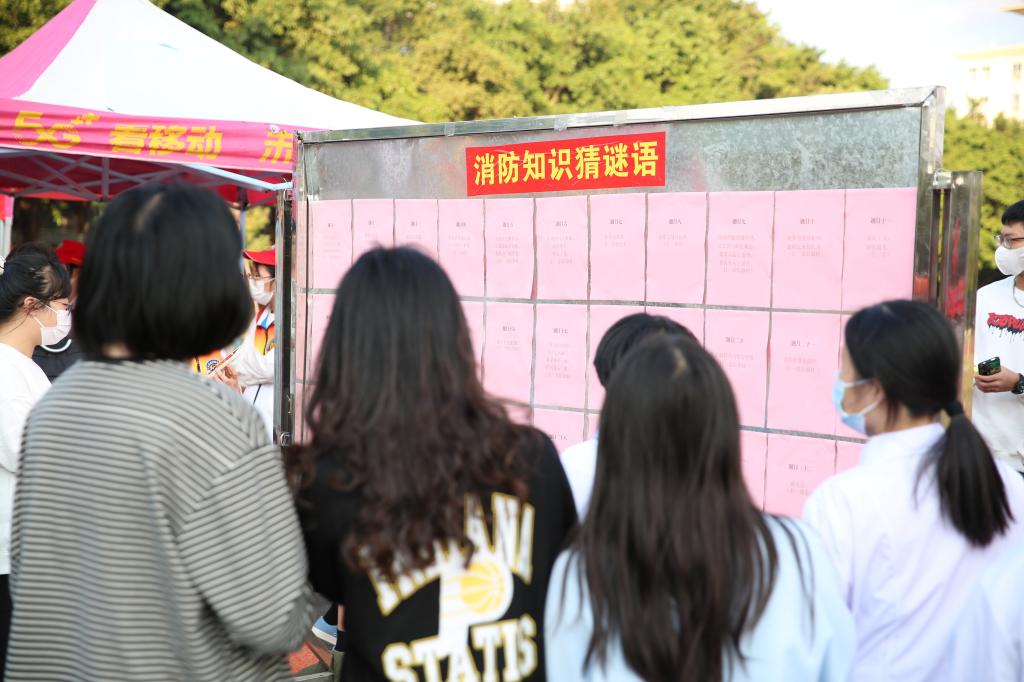 活动在舞蹈《采薇》、歌曲《我爱你中国》和啦啦操《change》等精彩的歌舞表演中拉开序幕。 活动现场内容丰富多彩,设置了消防知识及消防法律法规咨询、消防知识猜谜语、今天我想对消防员说、火灾模拟逃生体验、火线营救、查找火灾隐患体验、十万火急、油锅起火处置和消防车辆器材装备展示及攻坚技巧演示体验等多个项目供师生参观体验。