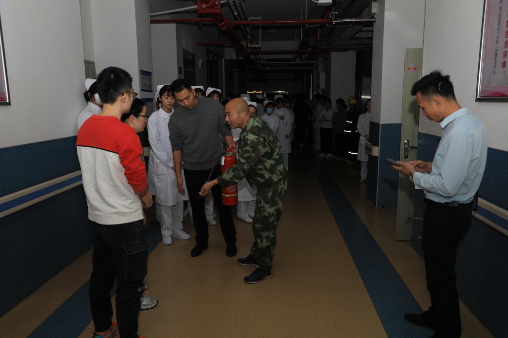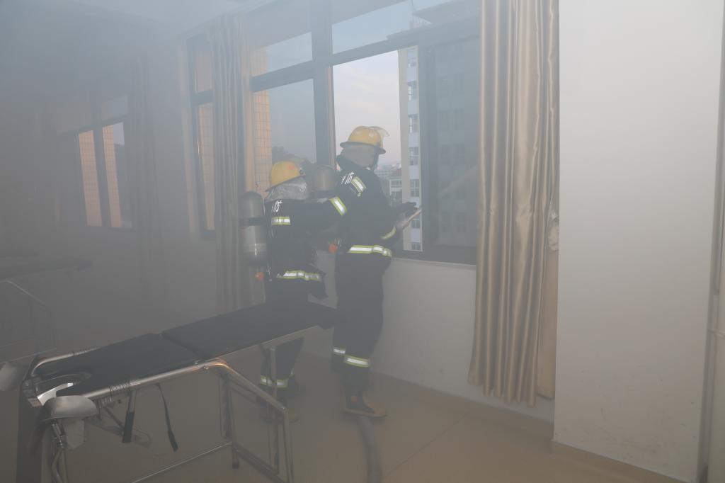体验项目结束后,现场师生参加了消防灭火疏散演练,现场假设漳州卫生职业学院实训楼5楼着火,现场“浓烟弥漫”,当警铃响起,现场老师利用就近消防器材进行灭火并报警,形成第一灭火力量,同时引导学生疏散,师生们纷纷弯腰低身,捂住口鼻,快速通过疏散楼梯,有序地抵达“安全地带”。火势进一步发展,学院启动了消防灭火疏散预案,学院微型消防站闻警而动,利用室内消火栓出水灭火,形成第二灭火力量;辖区消防救援大队接警后立即出动二部消防车12名指战员抵达现场,利用担架救人并出二把水枪控制火势蔓延,最终将火扑灭。