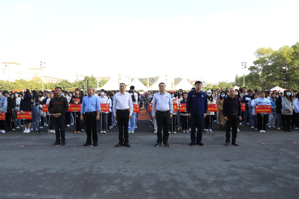 为推动全市师生关注消防、学习消防、参与消防,提升师生消防安全意识,夯实校园火灾防控基础,11月30日下午,由市教育局、市消防救援支队主办,芗城区消防救援大队、漳州卫生职业学院承办的2021年漳州市教育系统“119”消防宣传主题活动在漳州卫生职业学院体育艺术中心举行。漳州卫生职业学院党委副书记黄乃光、漳州市教育局副局长杜人江、漳州市芗城区消防救援大队大队长张喆、漳州市教育局学校安全工作科科长张相德、漳州卫生职业学院安全保卫处处长林碧聪出席活动。漳州市消防救援支队指战员、学院师生员工、市直高校、中小学、幼儿园的保卫处长、副校长、副园长、保卫干部及消防志愿者等2000余人参加活动。