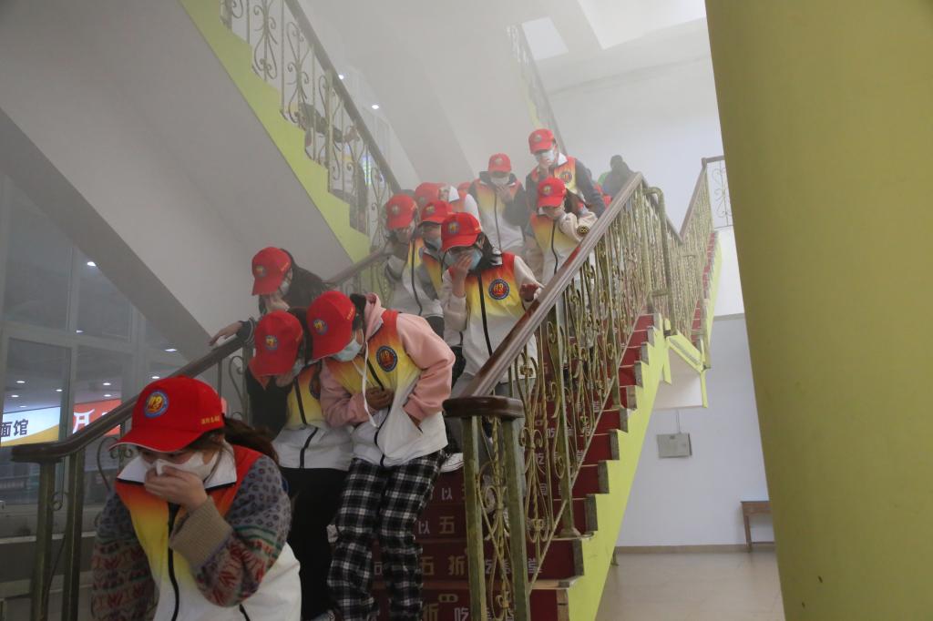 15时30分,一阵急促的警报声响起,消防应急疏散演练拉开序幕,因瑞和餐饮食堂二楼操作间的厨师操作失误导致发生火灾,警铃响起,现场工作人员立即报警并引导就餐师生进行疏散,芗城区消防救援大队消防救援人员接到报警后第一时间赶到现场,将“明火”扑灭,并成功解救2名被困人员,整个演练过程紧张有序。随后,消防救援人员为师生讲解使用灭火器的方法,“要保持冷静,站在着火点的上风位置,记住口诀“提、拔、握、压”对准火焰根部进喷射干粉灭火”,讲解完毕后,师生分组进行体验油盆灭火。消防应急疏散演练结束后,学院王老师带领消防志愿者对学院内的消防设施展开消防安全检查,将安全隐患消除在萌芽状态。