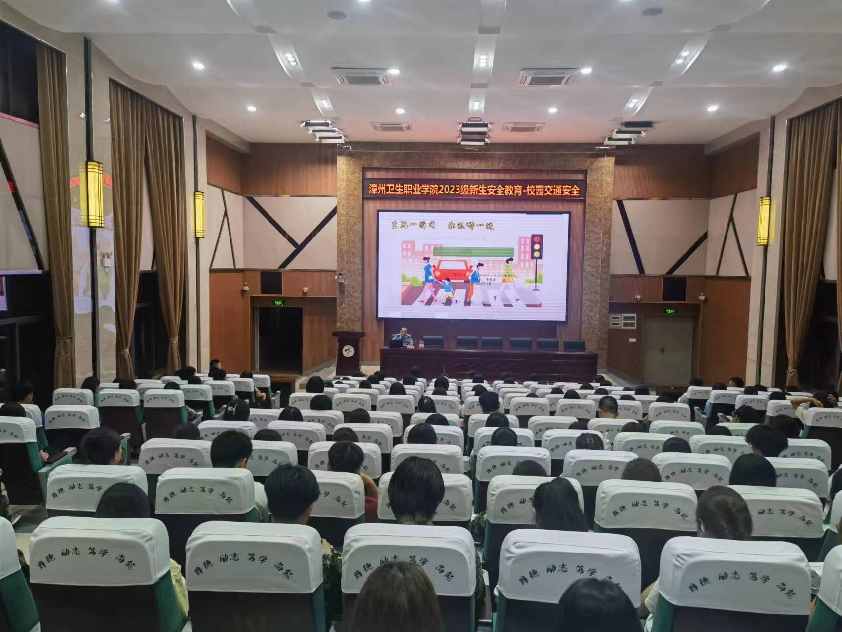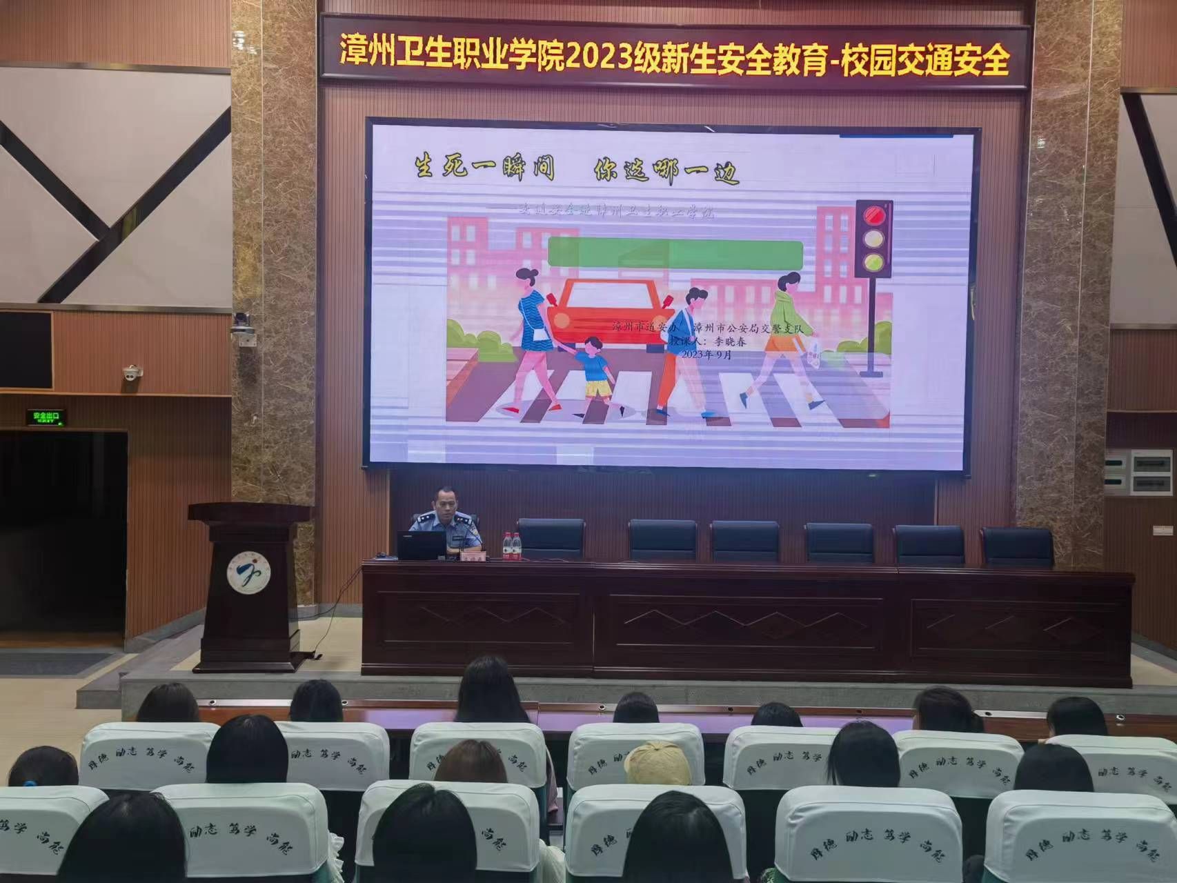 为了提升我校师生对交通安全的重视程度,提高他们的自我保护和安全防范能力,以有效地预防和减少道路交通事故的发生。9月14日晚,学校举办2023级新生入学安全教育—交通安全知识教育讲座,邀请漳州市公安局交警支队事故大队教导员李晓春来授课,2023级4000余名新生聆听讲座。