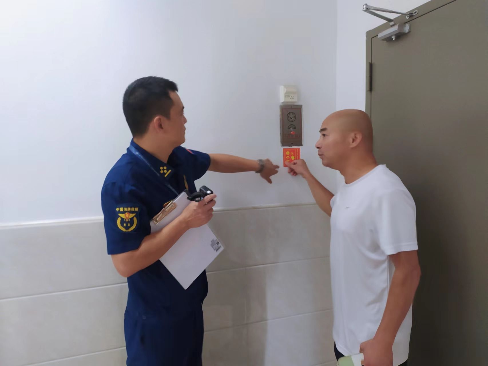 为进一步做好期初开学校园消防安全工作,加强学校自身火灾隐患排查整改力度,坚决预防火灾事故发生,保障广大师生生命财产安全,9月13日上午,芗城区消防救援大队检查组走进我校检查指导消防安全工作,安保处工作人员陪同检查。