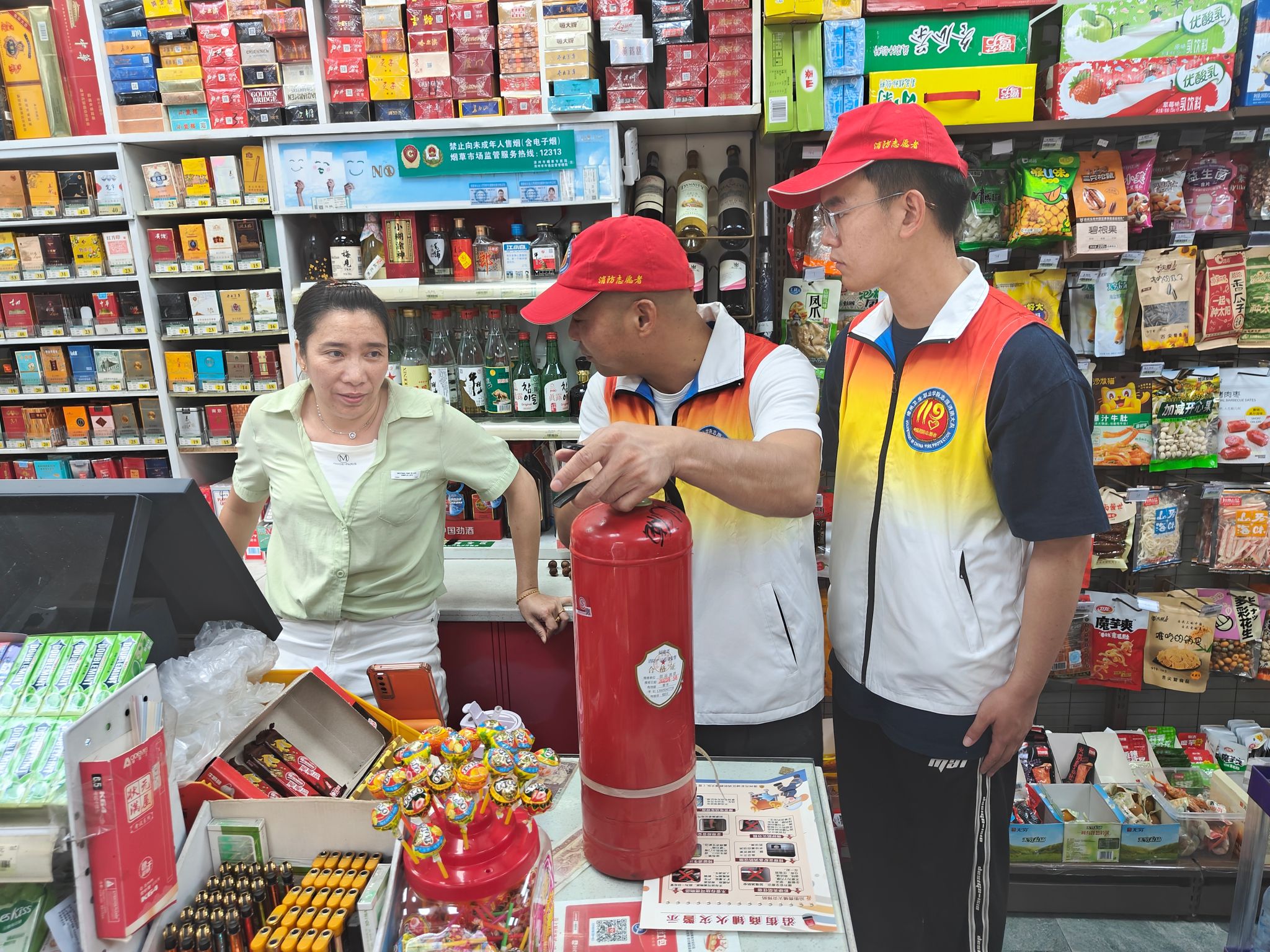 “秋季风干物燥,咱们一定要注意消防安全。”、“使用煤气前要及时检查,规范使用胶管。”、“电动车不要进楼入户,更不要飞线充电”“店铺不要住人……”消防志愿者走街入户发放宣传单,重点讲解了如何使用灭火器、发生火灾后如何正确报警、如何扑救初起火灾以及如何进行自救逃生等消防安全知识。面对不同群体的不同需求,消防志愿者耐心讲解日常家庭生活中电器类、燃气类火灾的排查方法和预防措施。