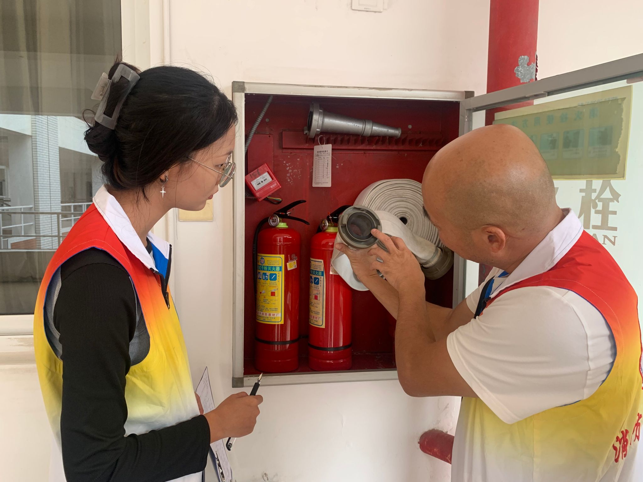 此次重点检查各栋建筑的安全出口、疏散通道是否畅通无阻;疏散指示标志、应急照明灯设置是否符合要求;室内消火栓箱内的配件等消防器材是否在位有效。经查发现部分疏散指示灯和消防应急照明灯损坏,检查人员将存在问题反馈给第三方公司,要求其尽快修复,确保消防器材完好有效。