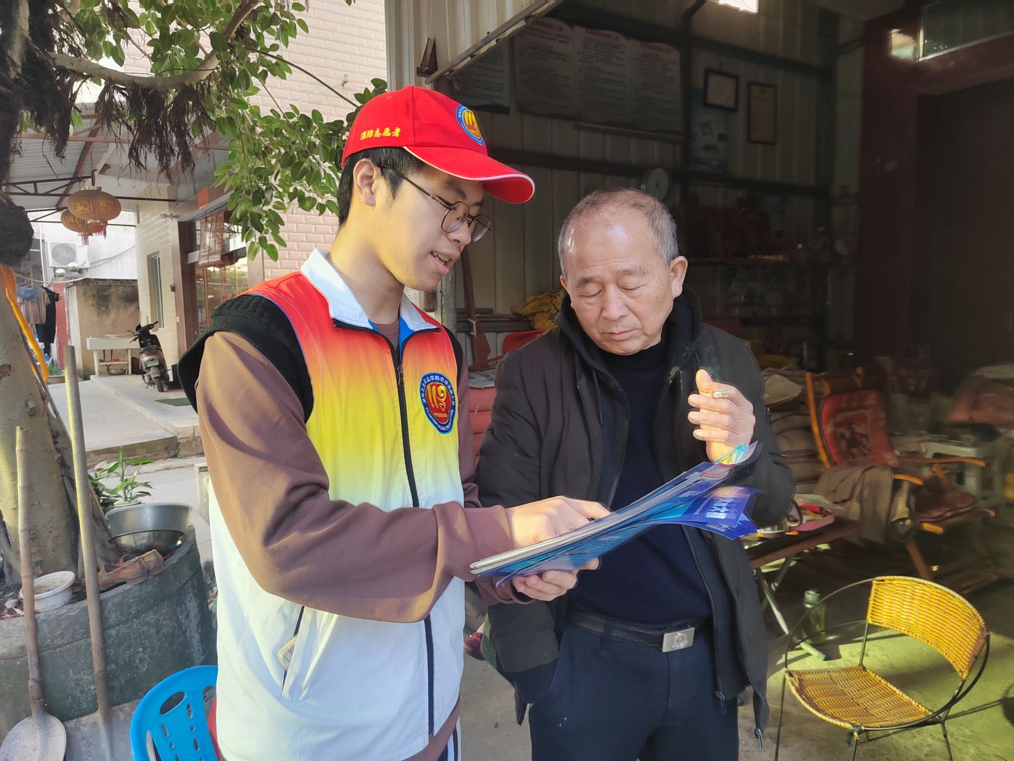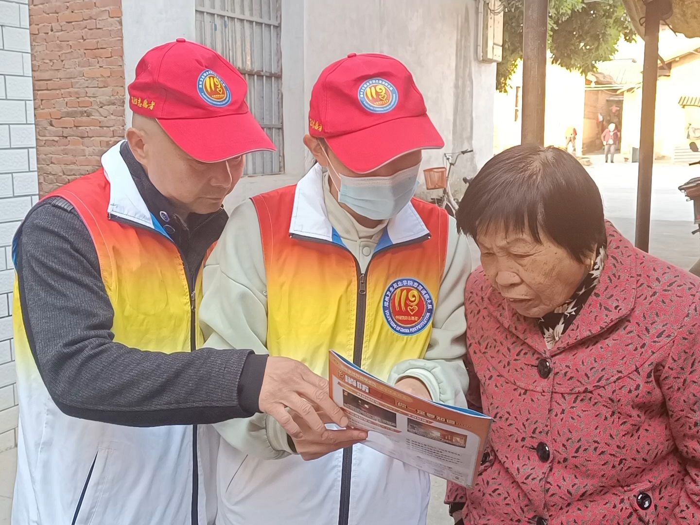 视频1-3:宣传人员向村民宣讲消防安全知识