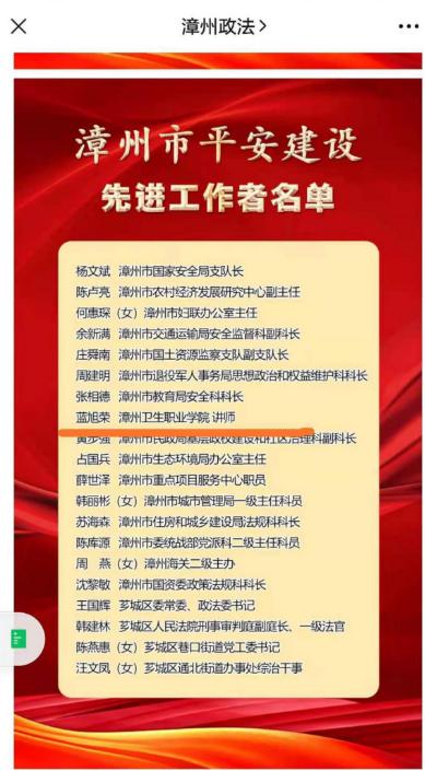 喜报!热烈祝贺蓝旭荣同志荣获“漳州市平安建设先进工作者”称号!