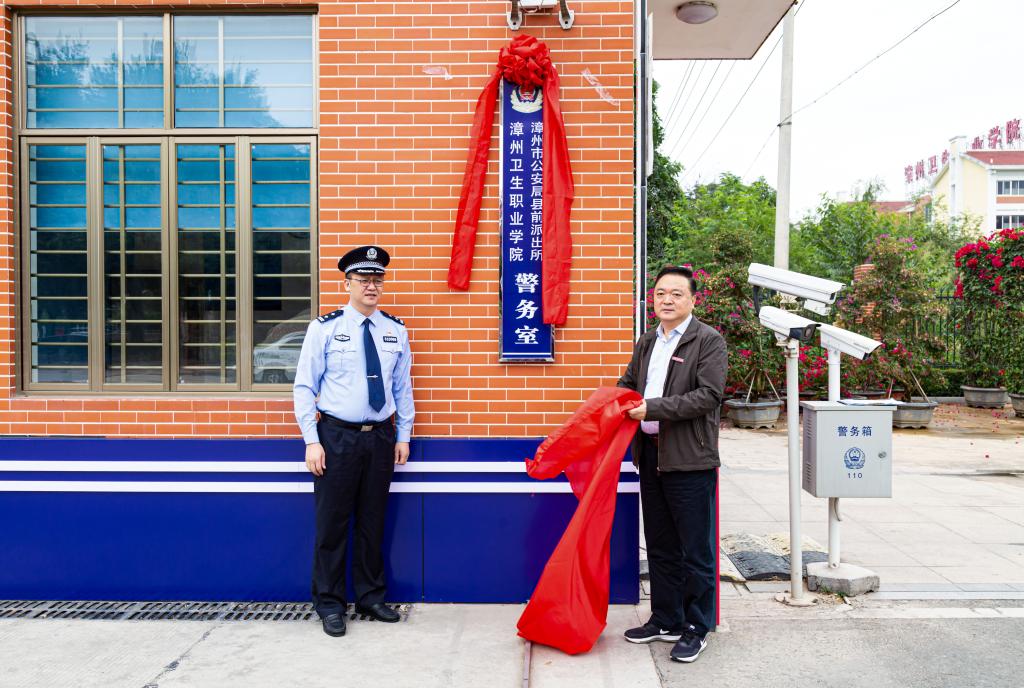 12月1日上午,县前派出所漳州卫生职业学院警务室举行揭牌仪式,学院党委副书记黄乃光,漳州市公安局芗城分局党委委员、副局长侯志斌共同为警务室揭牌。学院安全保卫处和县前派出所相关人员出席仪式。