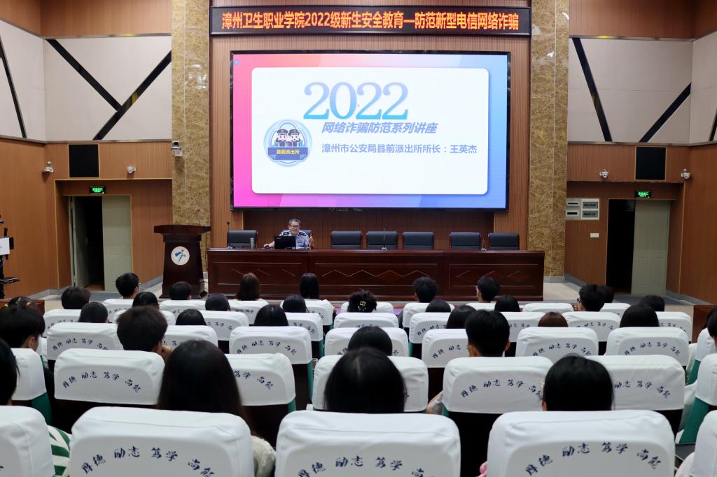 为有效遏制利用电信和互联网渠道实施诈骗犯罪活动在校园发生,提高新生对电信诈骗手法的识别和防范能力,9月5日晚,学院邀请芗城区反诈骗宣传大使、县前派出所所长王英杰到学院开展“防范新型电信网络诈骗”讲座。受新冠肺炎疫情影响,讲座以“线上直播+线下授课”形式进行,2022级4000余名新生聆听讲座。