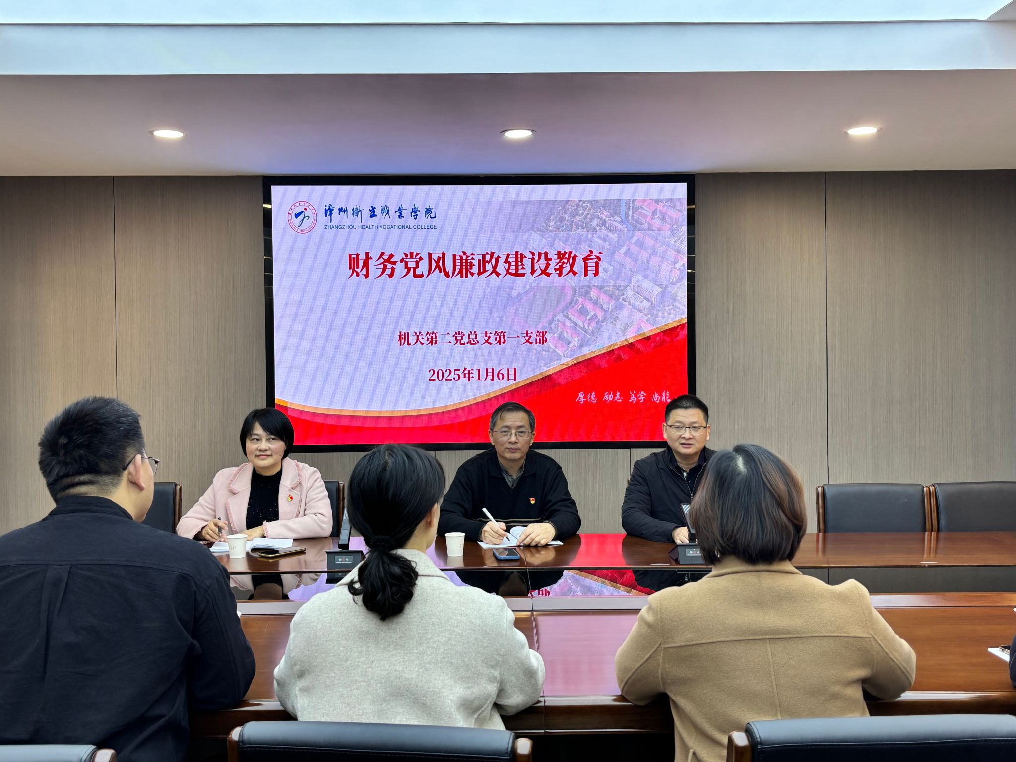 1月6日,机关第二党总支第一支部在第二会议室开展财务党风廉政建设教育。会议由支部书记张信志主持,财务分管副校长蔡韶滨出席指导。