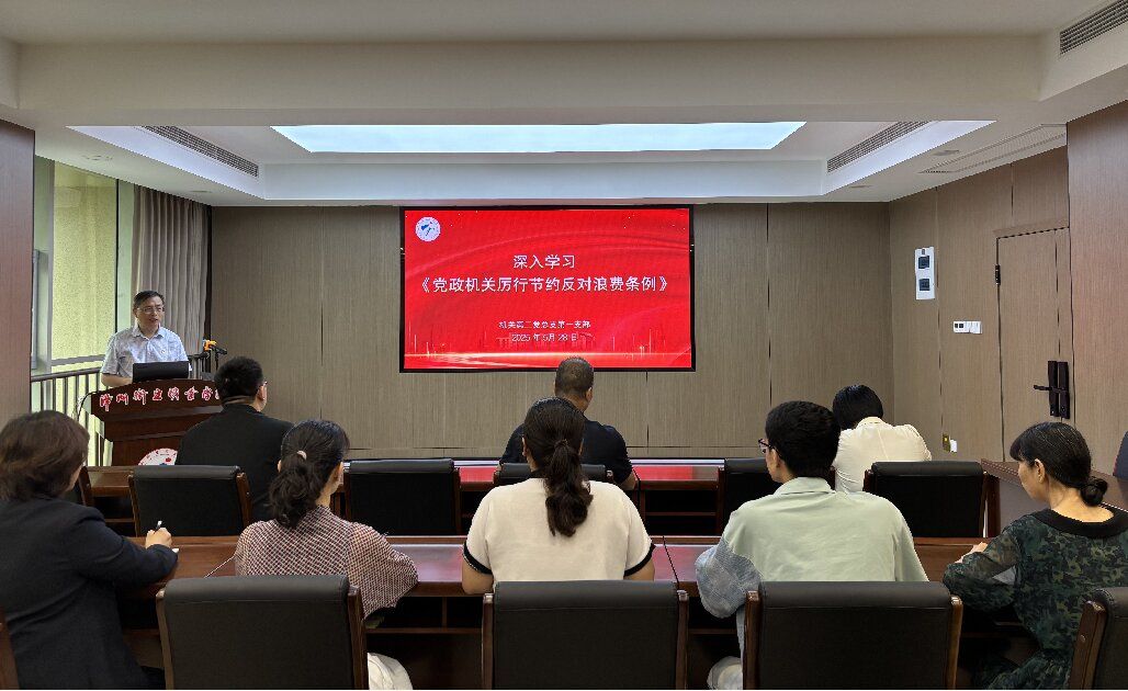 为深入贯彻落实中央关于“过紧日子”的决策部署,持续深化作风建设,5月28日上午,机关第二党总支第一支部组织开展《党政机关厉行节约反对浪费条例》专题学习主题党日活动。校长何坚以普通党员身份参加学习。