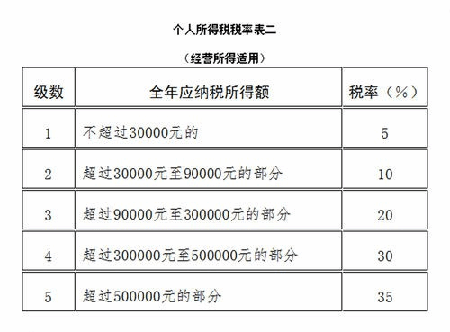 (二)经营所得,适用百分之五至百分之三十五的超额累进税率(税率表附后);