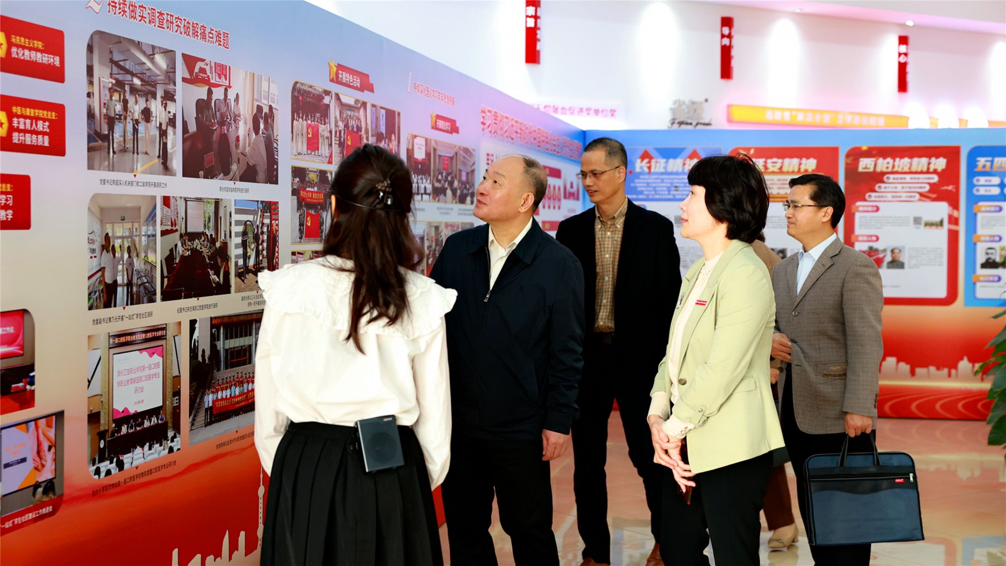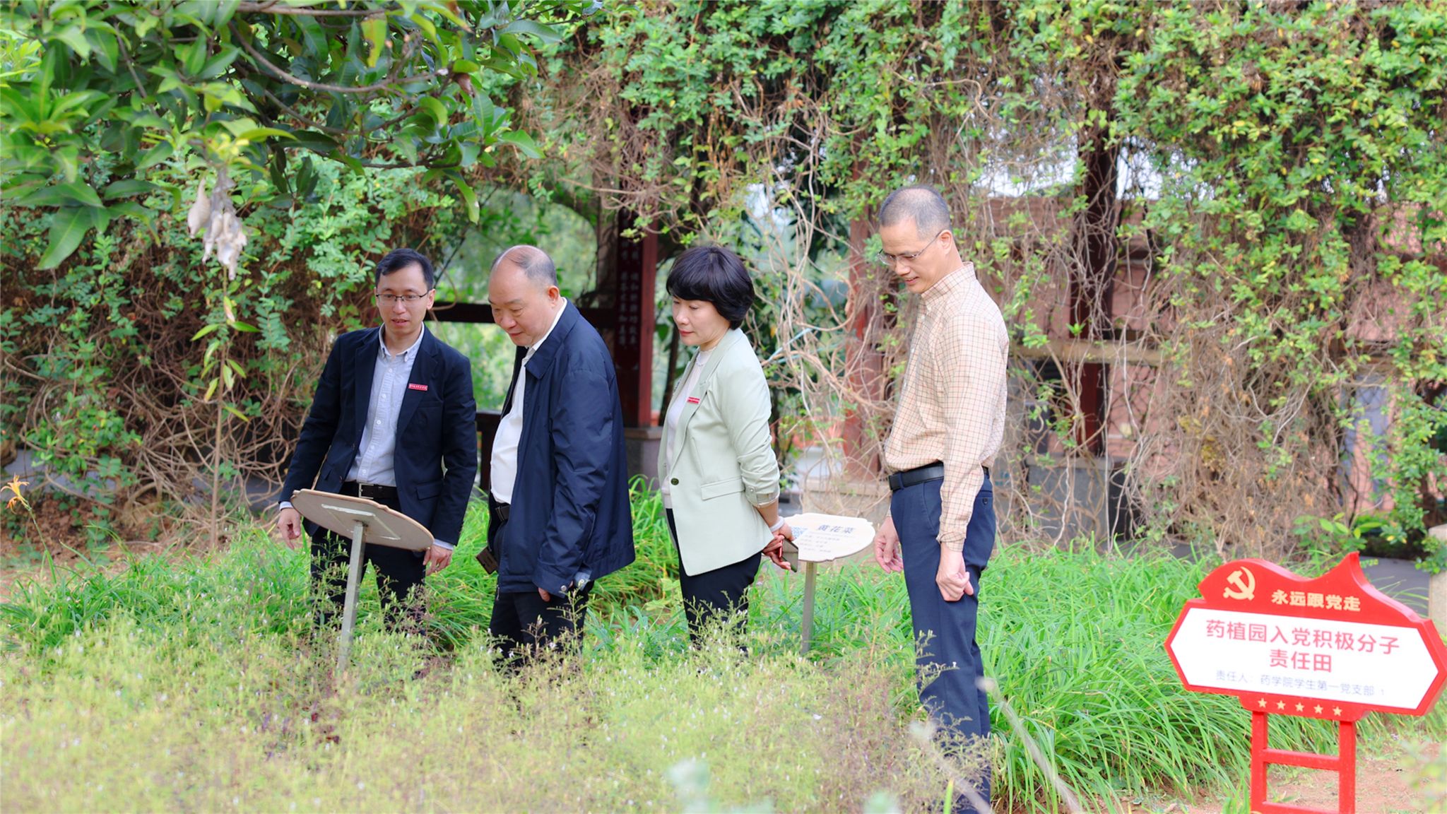 督导组一行参观学校主题教育图片展,走访了红园、筑梦园、百草园、杏林学堂等地,通过实地察看、查阅资料、座谈交流等方式进行调研,实地了解我校主题教育进展情况。