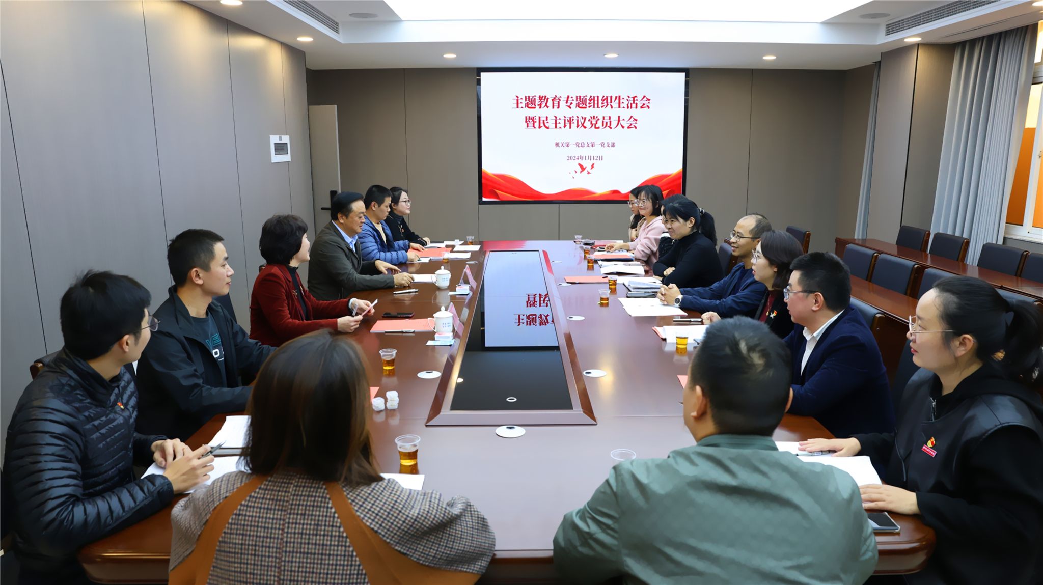 为深入学习贯彻习近平新时代中国特色社会主义思想,1月12日下午,机关第一党总支第一党支部在行政楼五楼第二会议室召开主题教育专题组织生活会。校党委书记陈超、党委副书记黄乃光以普通党员身份参加,会议由党支部书记郑文忠主持。