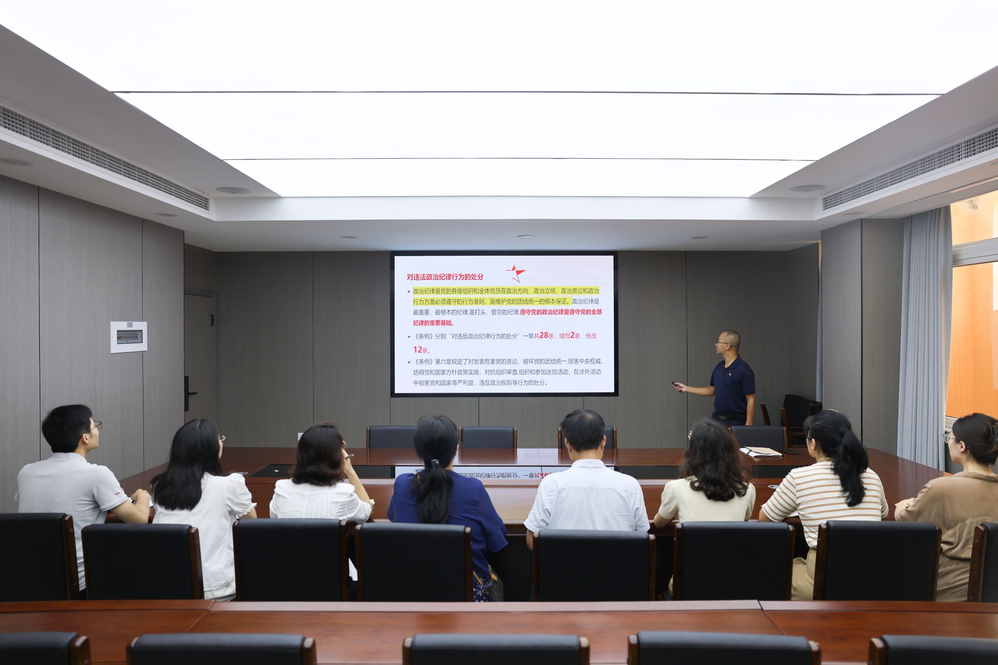 6月19日,学校党委委员、组织统战部部长、机关第一党总支第二党支部书记方鑫以《学条例 守党纪 正风气 强队伍》为主题,为支部党员讲授党纪学习教育专题党课。