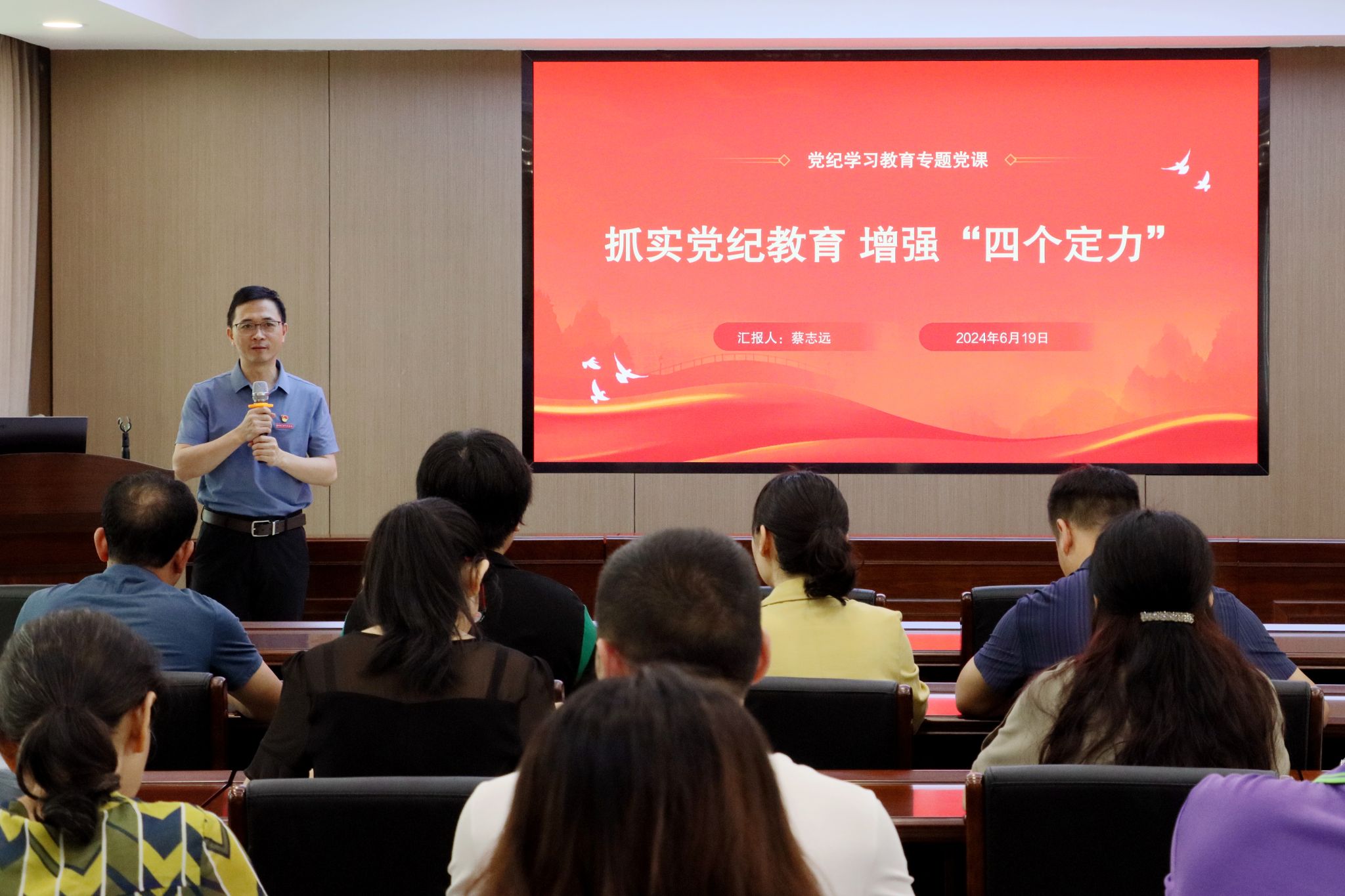 6月19日,机关第二党总支书记以《抓实党纪教育,增强“四个定力”》为主题,为全体党员讲授党纪学习教育专题党课。