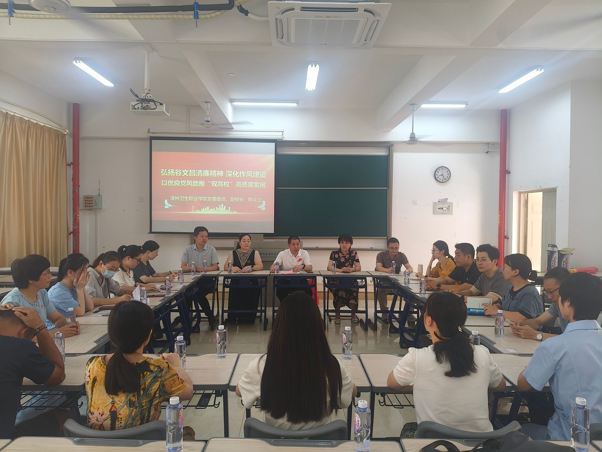 陈超带领机关第一党总支第一党支部、马克思主义学院教师第四党支部党员赴闽南(漳州)革命历史展览馆,开展“追寻红色足迹 赓续革命精神”主题党日活动。通过实地参观研学、重温入党誓词、发放政治生日贺卡等形式,在革命先烈的奋斗足迹中重温初心。陈超强调,要以革命先辈为榜样,将党史学习教育成果转化为育人实践动力,在“林巧稚式”时代新人培育与学校“新双高”建设、升本培优等中心工作中强化使命担当,为培养德技双馨的医疗卫生人才筑牢思想根基。
