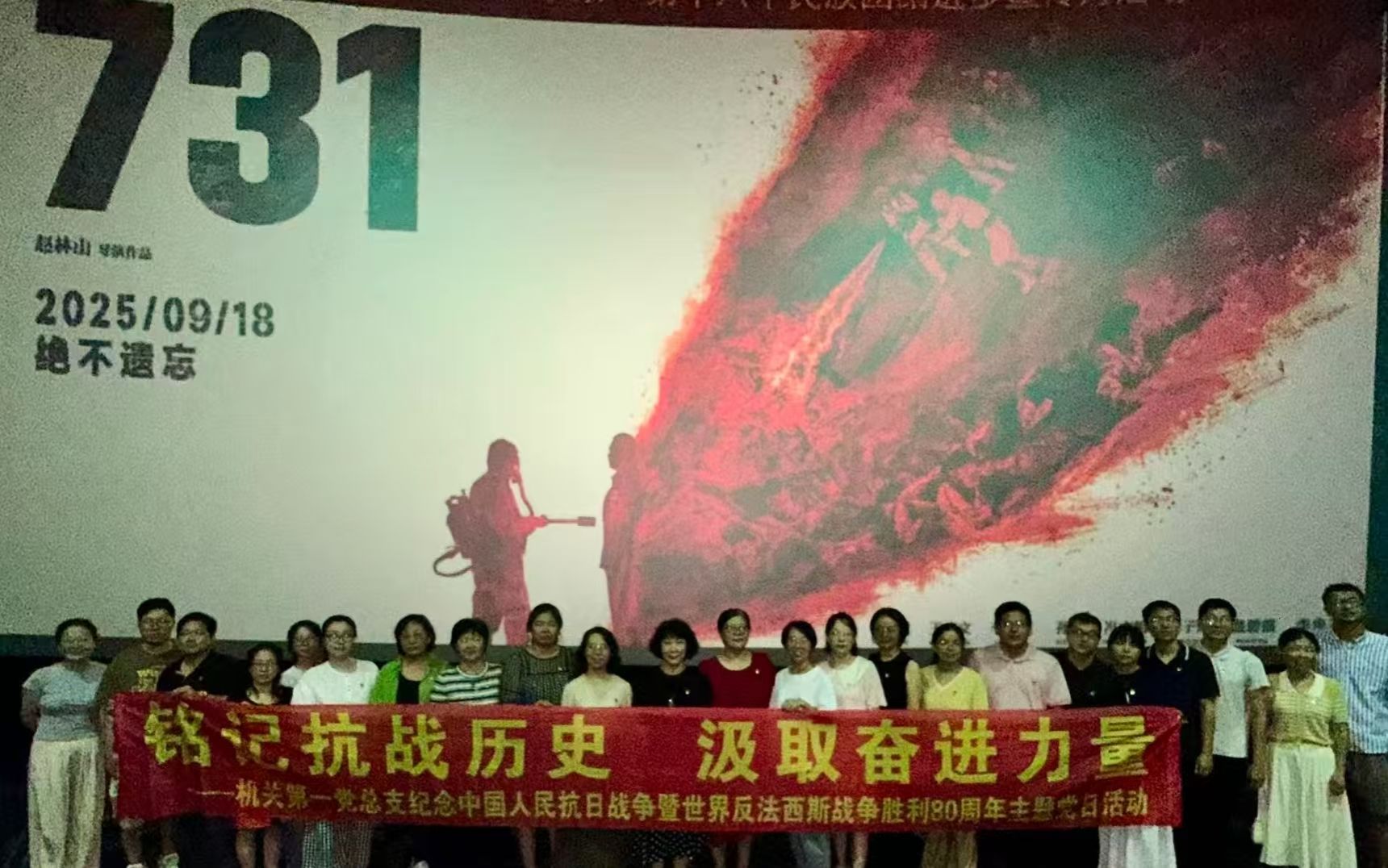 为深入学习贯彻习近平总书记关于纪念中国人民抗日战争暨世界反法西斯战争胜利80周年重要讲话精神,机关第一党总支于2025年9月18日开展“铭记抗战历史,汲取奋进力量”主题党日活动,组织全体党员集中观看电影《731》。学校党委书记陈超以普通党员身份全程参与,与机关第一党总支全体党员、少数民族学生代表、共青团员及普通学生代表共同接受历史教育和精神洗礼。