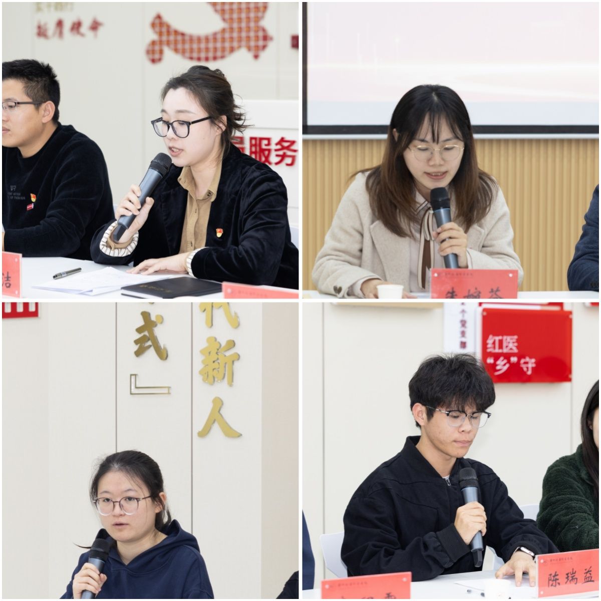 为深入学习宣传贯彻党的二十届四中全会精神,走好新时代党的群众路线,12月4日下午,机关第一党总支第二党支部联合护理学院学生第二党支部,共同开展“书记月谈”暨“林巧稚式”时代新人培育座谈会,校党委副书记叶文辉以普通党员的身份参加此次座谈会。