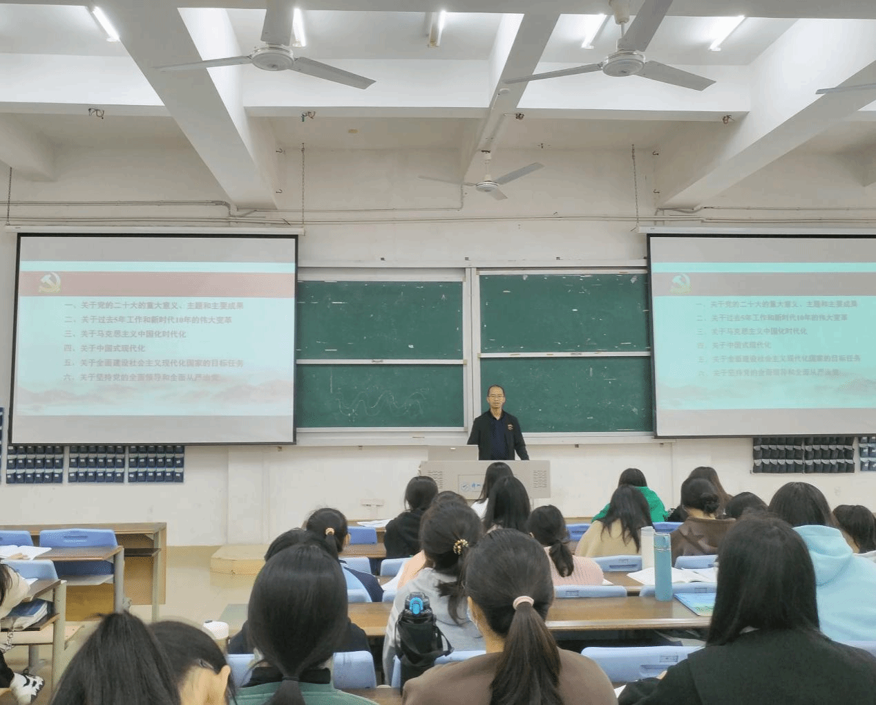 12月6日,福建省教育系统学习贯彻党的二十大精神理论骨干教师宣讲团成员、学院党委委员、组织统战部部长方鑫在学院明德楼102教室作党的二十大精神宣讲报告,2022级高职助产1班、2班学生聆听报告会。