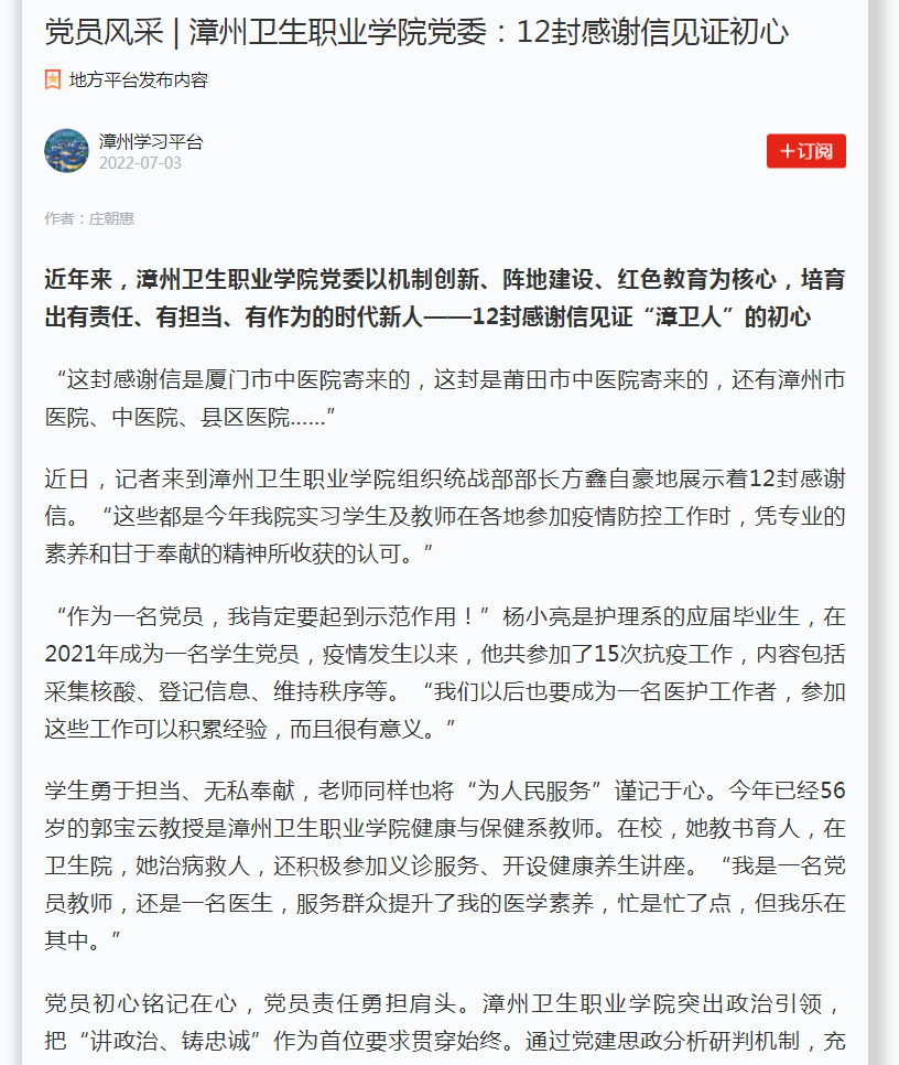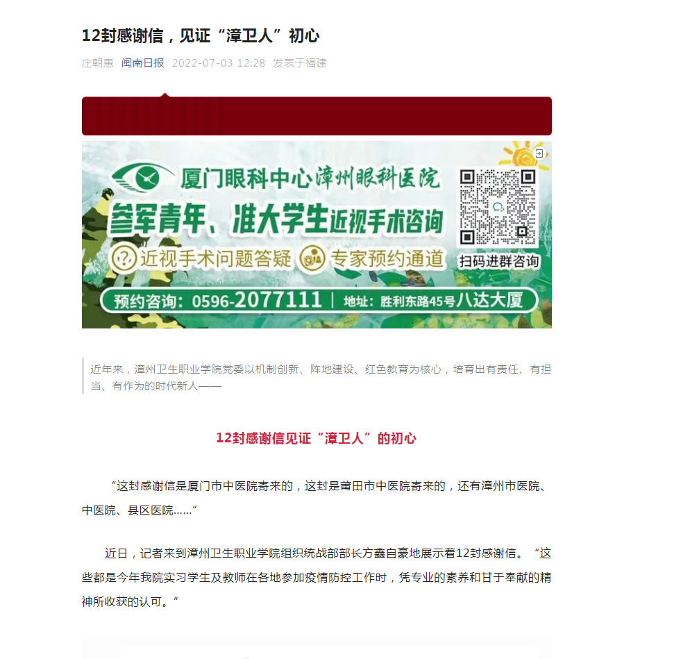 学习强国、闽南日报:12封感谢信,见证“漳卫人”初心