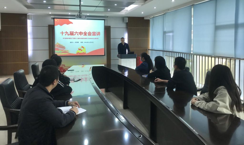11月25、26日,机关第一党总支开展了3场党的十九届六中全会精神宣讲活动,分别由总支书记和两位支部书记主讲,学习对象分别为理论中心组成员、第一支部和第二支部全体党员。