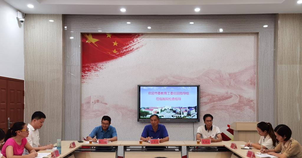 6月29日下午,市教育系统党史学习教育巡回指导组组长郭漳陵、市教育局三级调研员陈坪松、市教育局秘书科科长张琦一行莅临我院,检查指导党史学习教育开展情况。学院党委副书记黄乃光,办公室、党工部负责人,各党总支书记陪同检查。