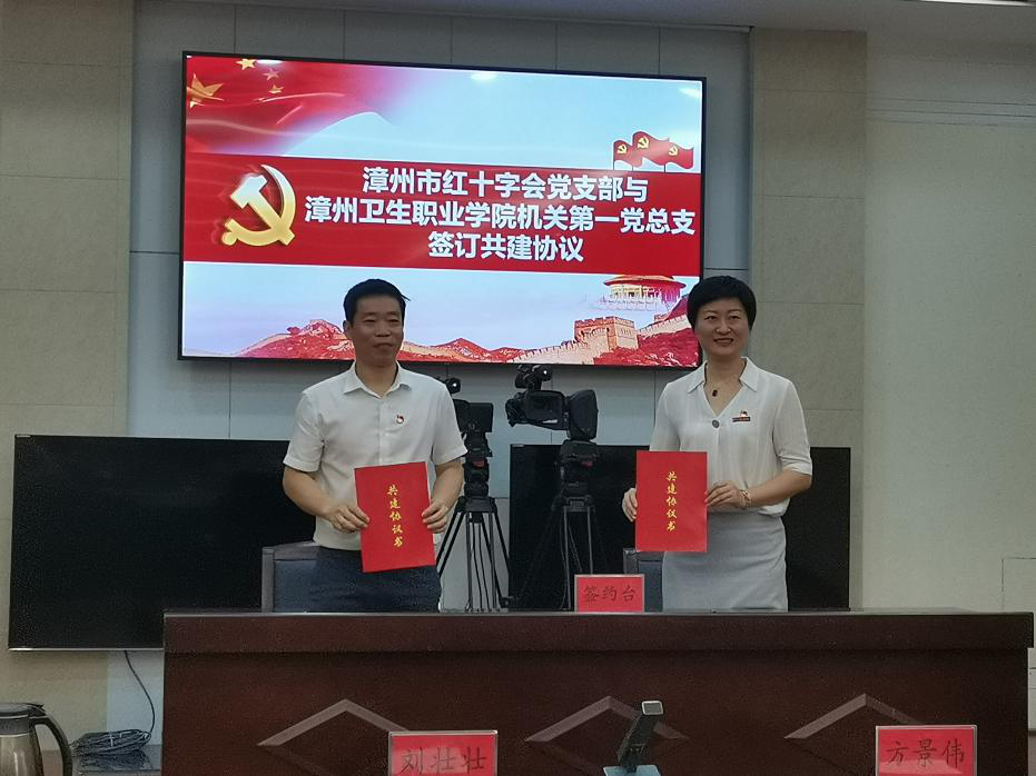 为贯彻落实党的十九届五中全会精神,保障“十四五”开好局起好步,夯实基层党建基础,创新党建工作举措,激发党建队伍活力,6月25日上午,学院机关第一党总支与漳州市红十字会支部在市政府办7号楼视频会议中心签订党组织共建协议。