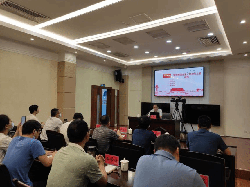 最后,漳州市红十字会邀请市委史志研究室志书编纂科科长、一级主任科员陈坤山做《鲜红党旗 辉映漳州——新民主主义革命时期党在漳州的奋斗历程、特点与启示》党史教育专题讲座,通过生动讲述典型革命案例、优秀革命人物,引导所有党员干部用党的光荣传统和优良作风坚定信念、凝聚力量,用党的实践创造和历史经验启迪智慧、砥砺品格。