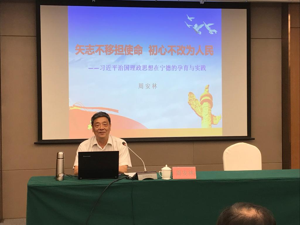 周安林从“习近平同志在宁德工作期间的重要思想和工作实践”“以务实的精神推动闽东摆脱贫困”“以人民的情怀把心贴近人民群众”“把廉政建设作为共产党人的历史使命”“情系闽东——魂牵梦绕的地方”五个方面,深刻阐述了习近平治国理政思想的形成路径和实践运用。报告内容丰富、系统全面、深刻透彻,对与会同志更好地理解和把握习近平治国理政思想具有重要借鉴意义和积极促进作用。