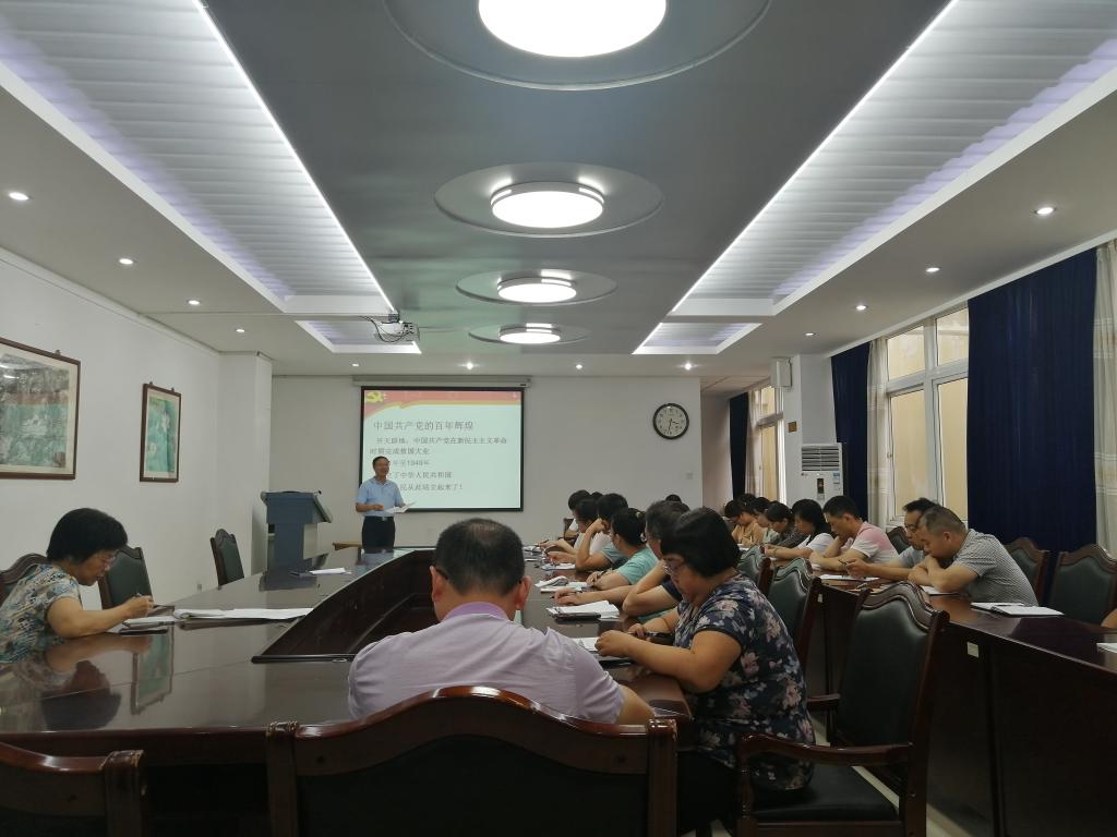 5月31日下午,学院院长沈国星在行政楼五楼会议室,以《中国共产党百年辉煌与启示》为主题,为机关第二党总支党员上了一堂生动的党史学习教育专题党课。