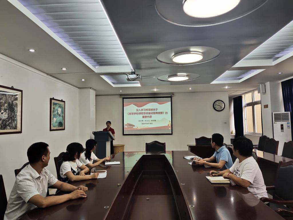 4月19日下午,机关第二党总支在行政楼五楼会议室召开中心组学习会议,专题学习教育部印发的《高等学校课程思政建设指导纲要》(以下简称《纲要》)等重要文件,中心组成员参加学习,会议由党总支书记主持。