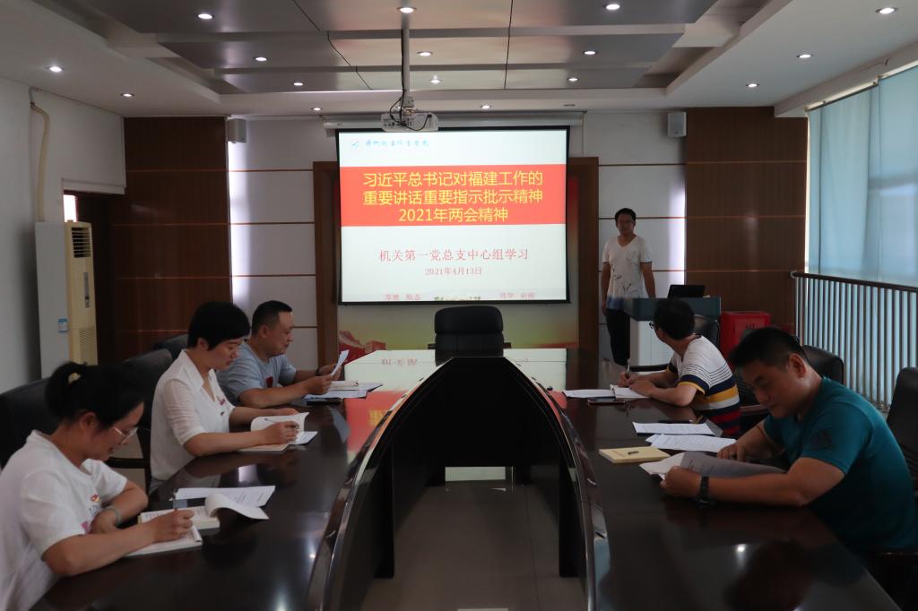 4月13日上午,机关第一党总支在行政楼四楼会议室召开理论中心组学习会议,专题学习习近平总书记对福建工作的重要讲话重要指示批示精神、2021年两会精神。