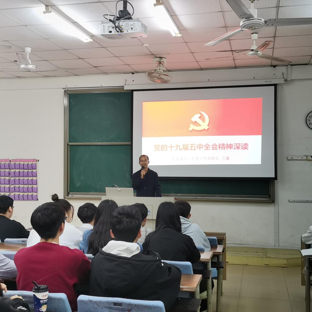 为深入学习贯彻党的十九届五中全会精神,3月24日晚上,学院党委工作部部长方鑫在明德楼501室为临床系学生作党的十九届五中全会精神宣讲报告。