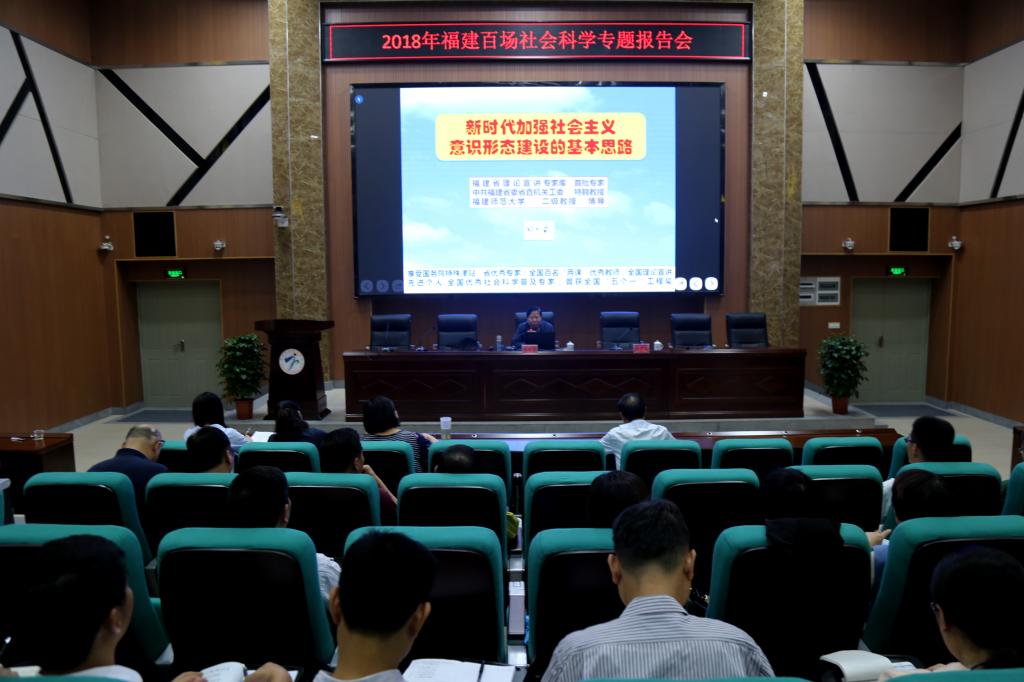 10月11日下午,我院党委中心组在学术报告厅召开学习扩大会,邀请福建省百场社会科学专题报告会专家、福建师范大学马克思主义学院博士生导师郑又贤教授作《新时代加强社会主义意识形态建设的基本思路》专题报告,全院副科级以上干部、思想政治理论课教师、民主党派教师代表参加学习,同时参会的还有漳州市教育局和市属中小学科级以上干部,共近180人。报告会由副院长沈小美主持。