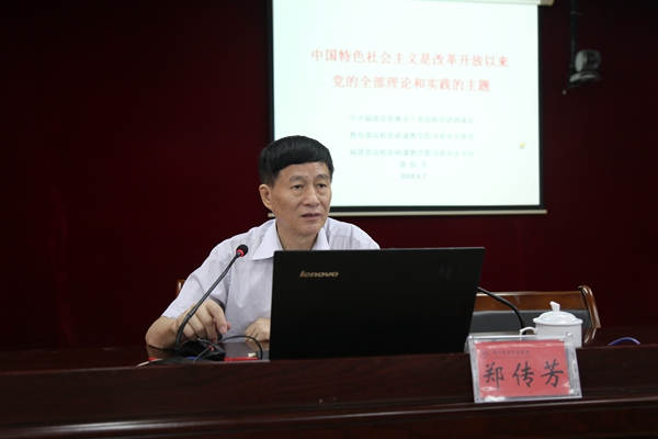 郑传芳教授从中国特色社会主义是党艰辛探索的重要成果、中国特色社会主义是改革开放以来当代中国最鲜明的时代特征、学习习近平新时代中国特色社会主义思想、坚定中国特色社会主义“四个自信”等四个方面全面阐述了中国共产党人对社会主义的艰辛探索,以及开辟中国特色社会主义道路、开创社会主义现代化建设新局面的历史必然和重大意义,深刻阐述了中国特色社会主义是改革开放以来党的全部理论和实践的主题这一事实。阐述了中国特色社会主义包含道路、理论、制度、文化不可或缺的内容,必须要坚定道路自信、理论自信、制度自信、文化自信,深刻把握其内涵,坚决抵御各种破坏和干扰。