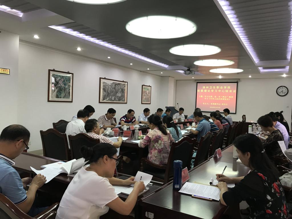 5月3日下午,我院党委理论学习中心组在行政楼五楼会议室召开学习扩大会,专题学习全国、省、市“两会”精神以及《中华人民共和国宪法》。学院领导班子成员及各部门负责人参加学习。会议由党委工作部负责人主持,党委副书记郑长江主讲。